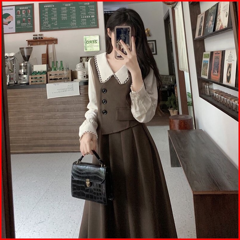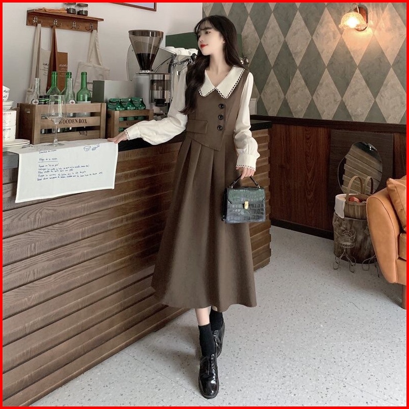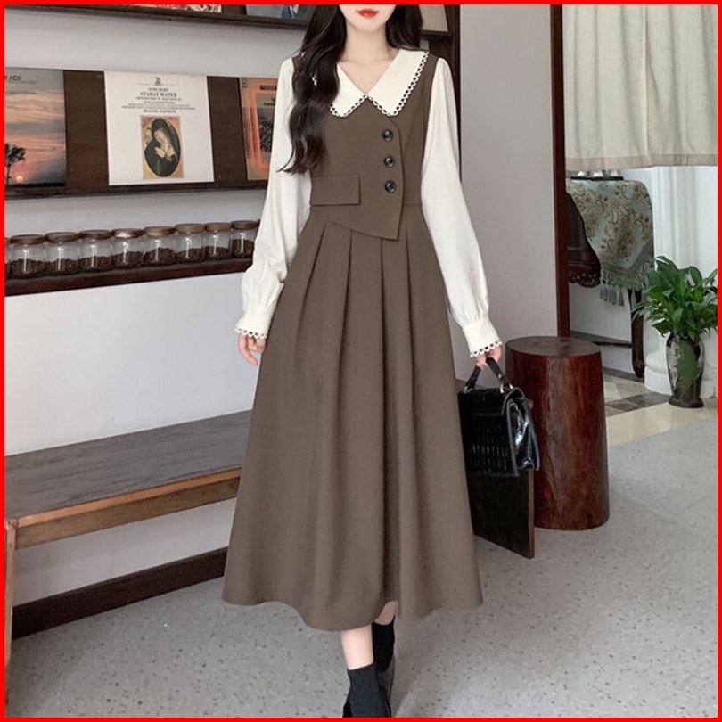 Dress New Collar Style Vintage Lengan Cream Dress Lebaran - G019