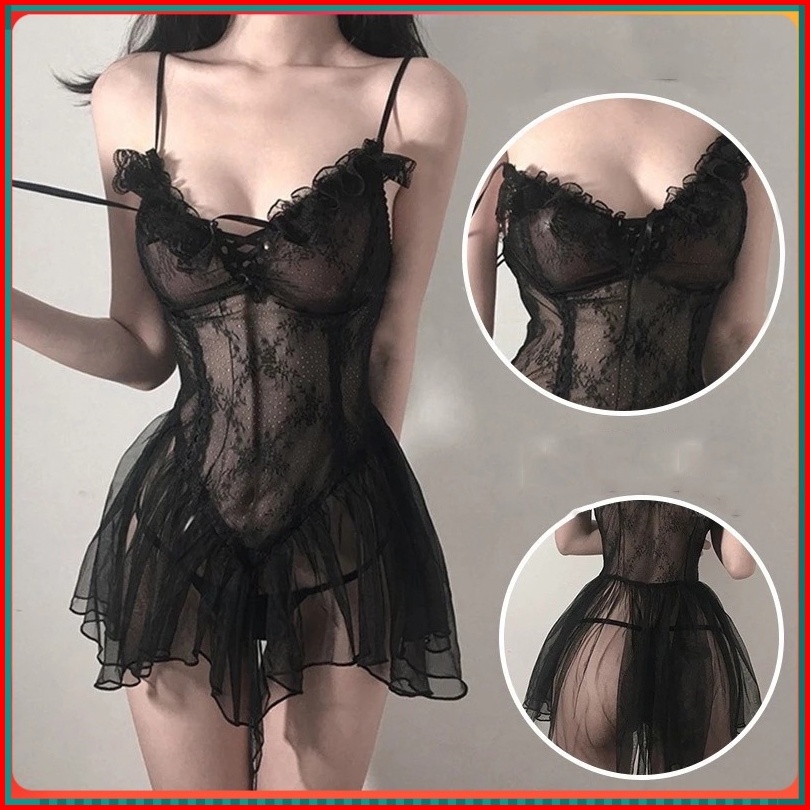 Anime Wanita Seksi Lingerie Suspender Baju Tidur Set Baju Tidur Seragam Godaan Renda Perspektif Perspektif Sweet Deep V