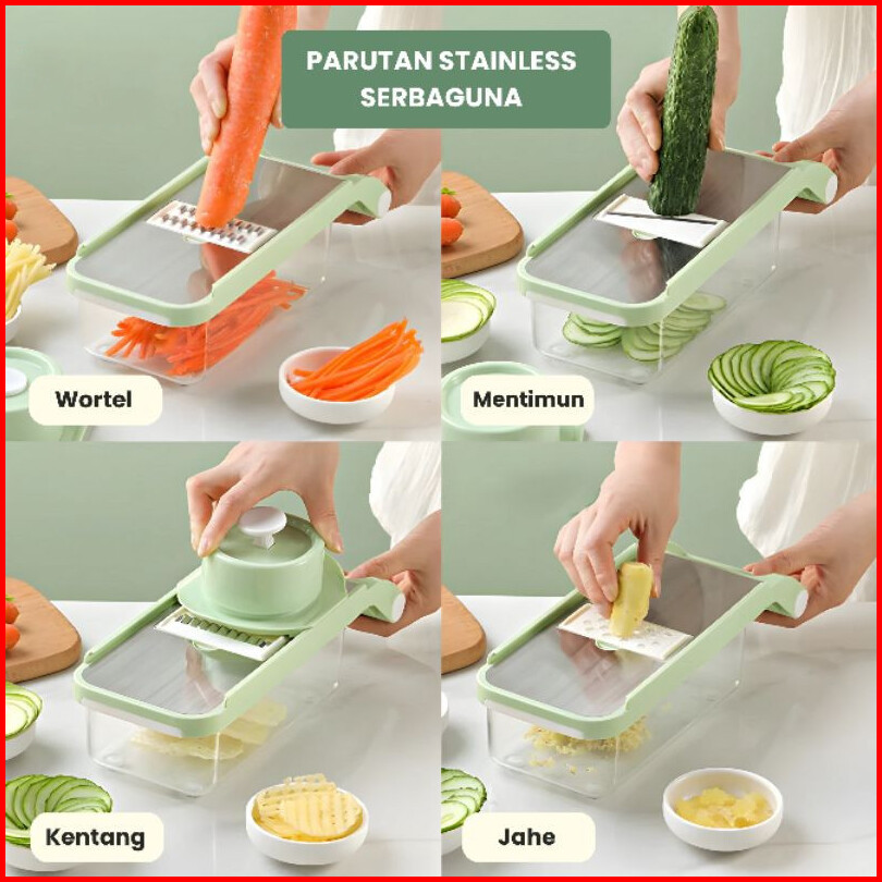 Banten Ready Stock Parutan Stainless Potong Iris Sayur Buah Serbaguna Premium Vegetable Cutter 6 Pisau Wadah Transparan