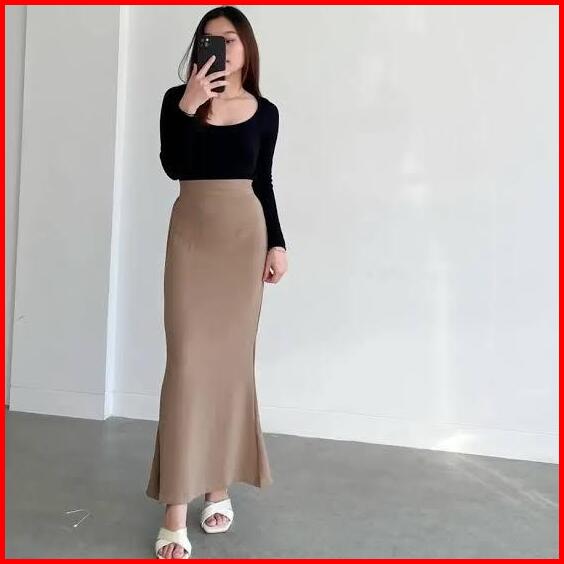 Rok Maxi Wanita Lunar Mermaid Scuba Flowy Elastis Stylish Elegan