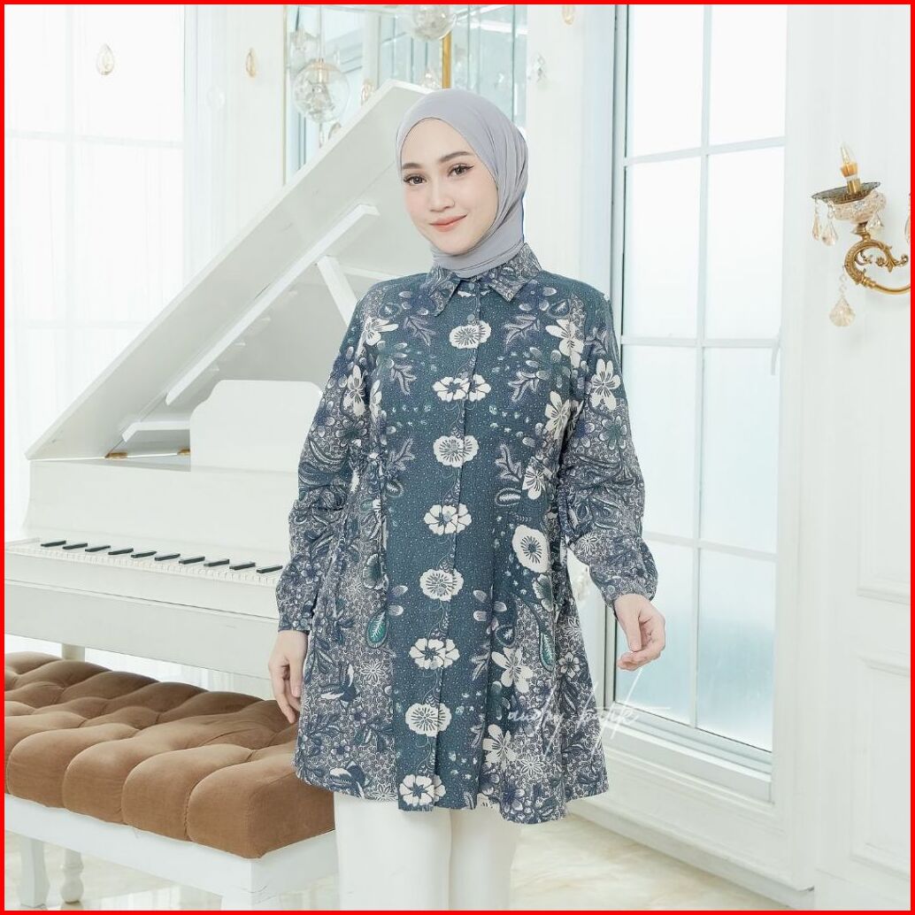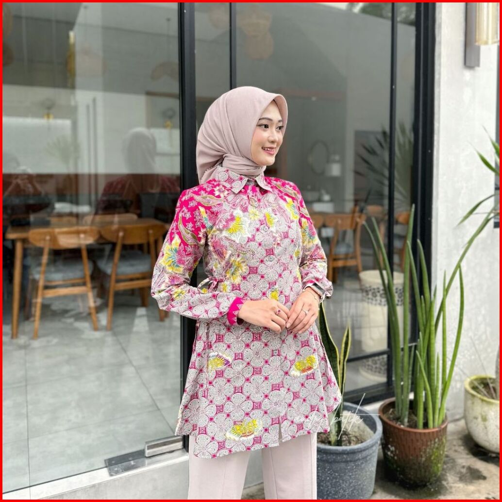 Audry Batik - Dewita - Blouse Batik Kerja Wanita Panjang Modern Motif Kawung Bunga Fanta