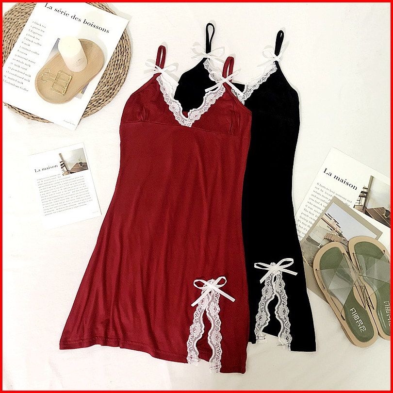 Okey Belibj1188 Pakaian Baju Daster Pita Renda Bunga Baju Tidur Bahan Satin Sexy Fashion Korea