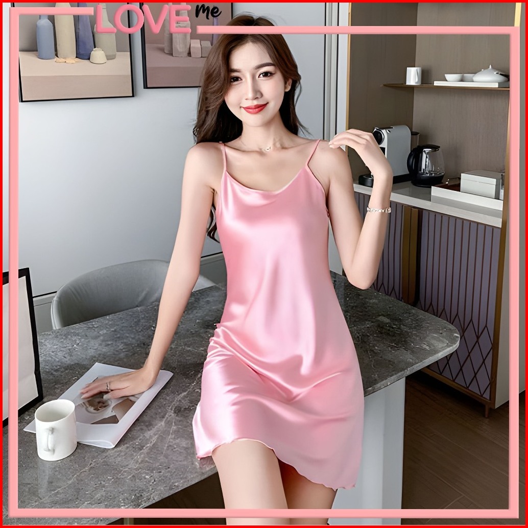 Loveme Baju Tidur Baju Rumah Santai Dress Tidur Bahan Silk Sutra Halus Motif Polosan Dengan Warna Solid 1284