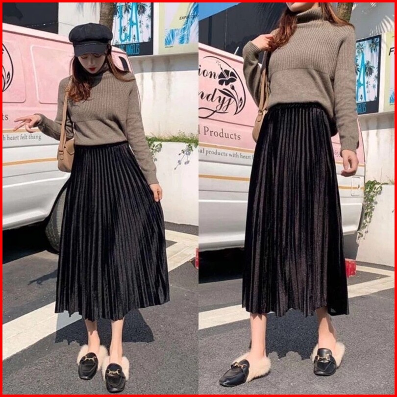 Threelook Rok Plisket Bludru Viral Velvet Premium 7 8 Model Terbaru Remaja Kekinian Warna Hitam Mocca Khaki Silver