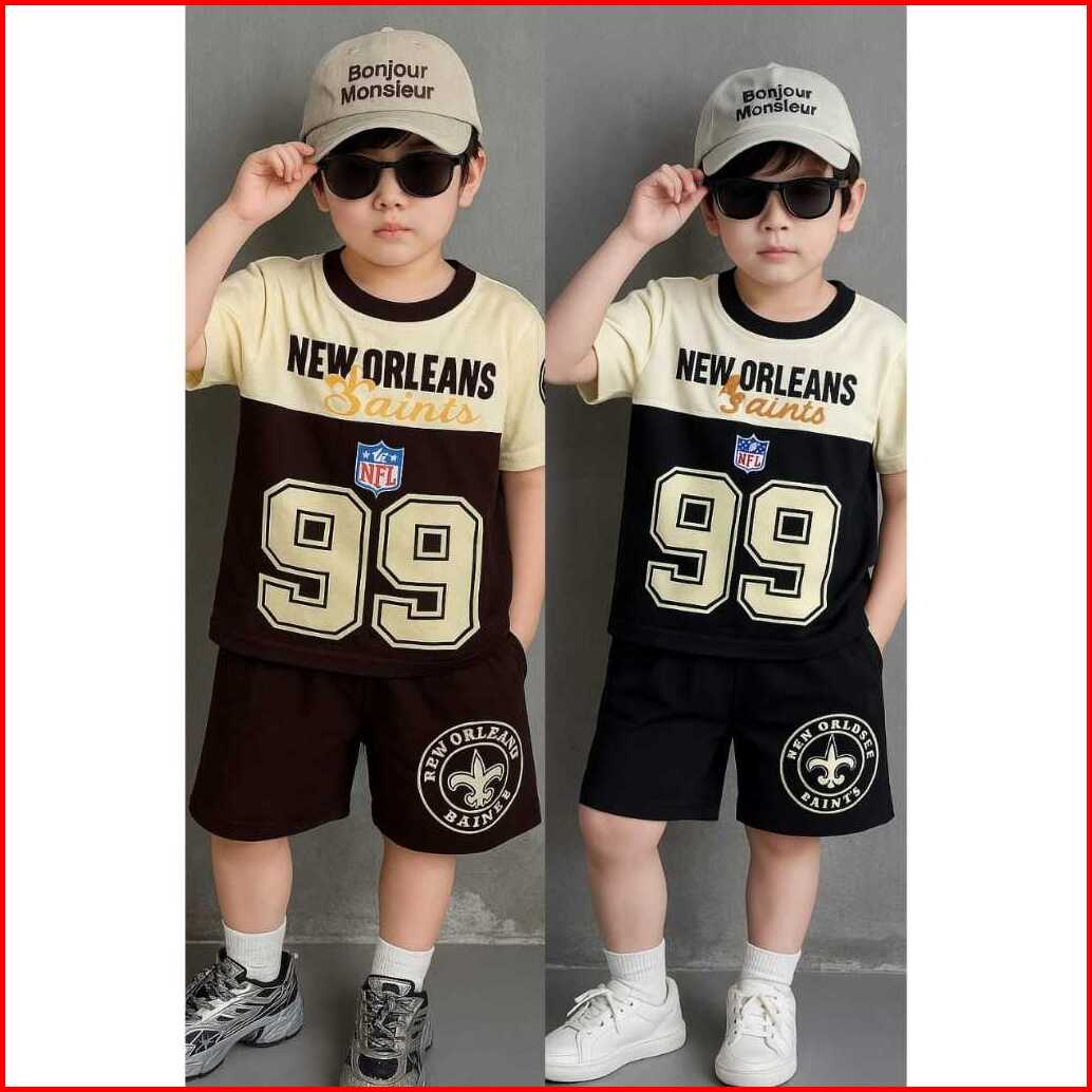 Setelan Anak New Orleans Saints Bahan Katun Lengan Pendek Usia Anak 3 Bulan-10 Tahun