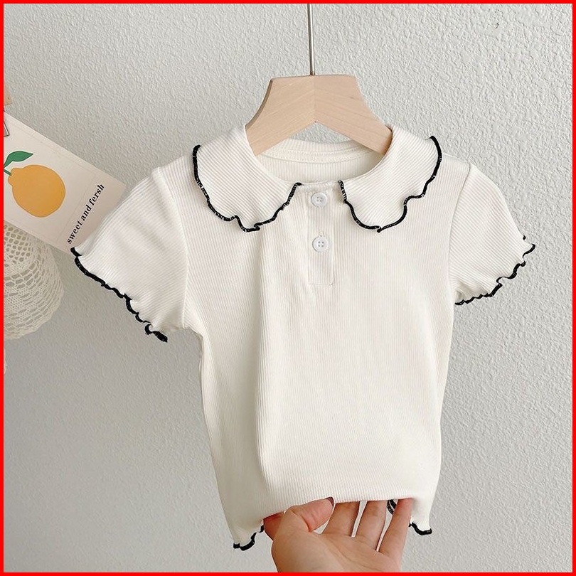 Princess Kesli 2-11 Tahun Kaos Lengan Pendek Musim Panas Untuk Anak Perempuan Dengan Kerah Boneka Atasan Lengan Pendek B