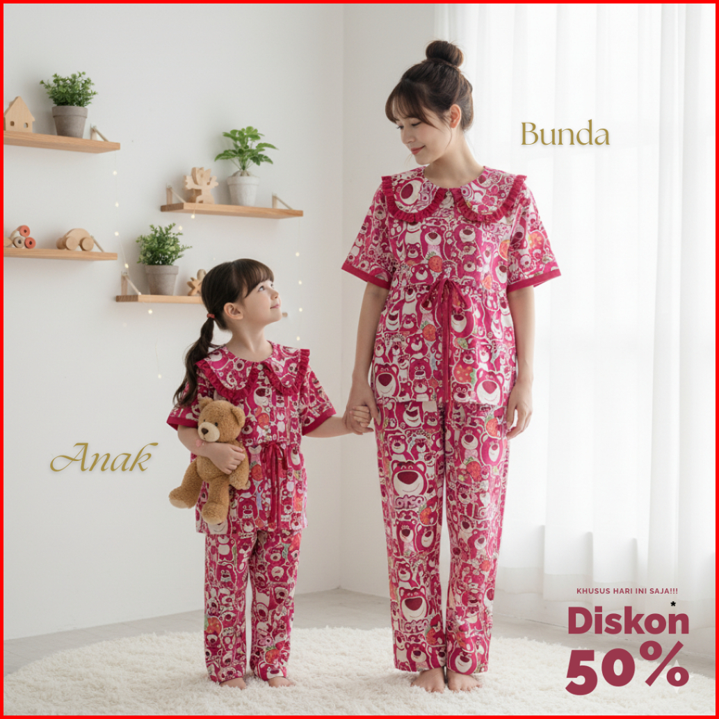 Setelan Piama Couple Bunda Anak Terbaru Motif Lucu - Lucu Harga Persatuan Pcs
