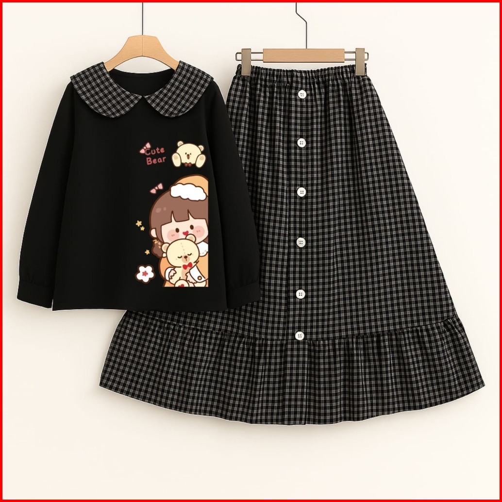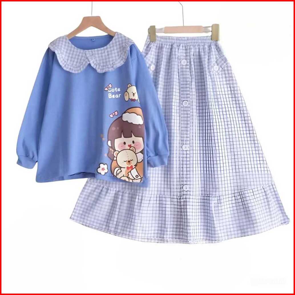 Setelan Anak Perempuan April Kids Kekinian Usia 4 Sampai 12 Tahun Crinkle Airflow Kombinasi Katun