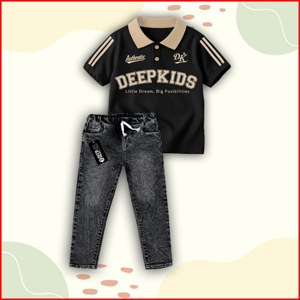 Setelan Anak Laki Laki Kaos Kerah Polo Celana Jeans Panjang Bahan Cotton Combed 24s Dan Denim Jeans Premium Usia 1 2 3 4
