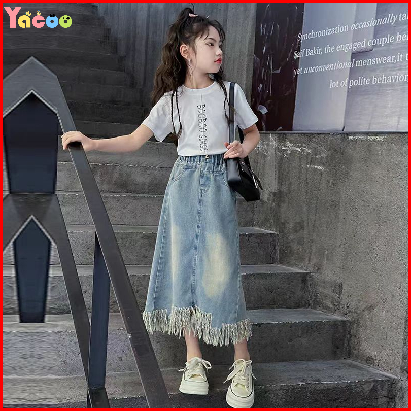 Yacoo Setelan Anak Perempuan Musim Panas 2025 Impor - Lengan Pendek Rok Denim Versi Korea Style