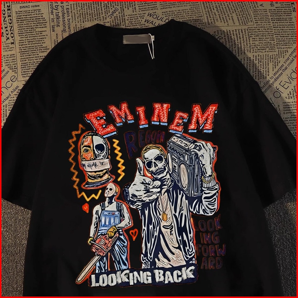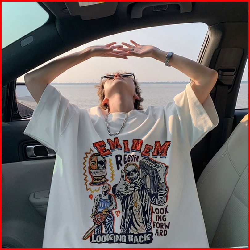 Tiny Tshirt Oversize Baju Kaos Pria Distro Original 100 Tebal Gaya Amerika Hip-hop Retro Kerangka Pola Pencetakan Kaos P