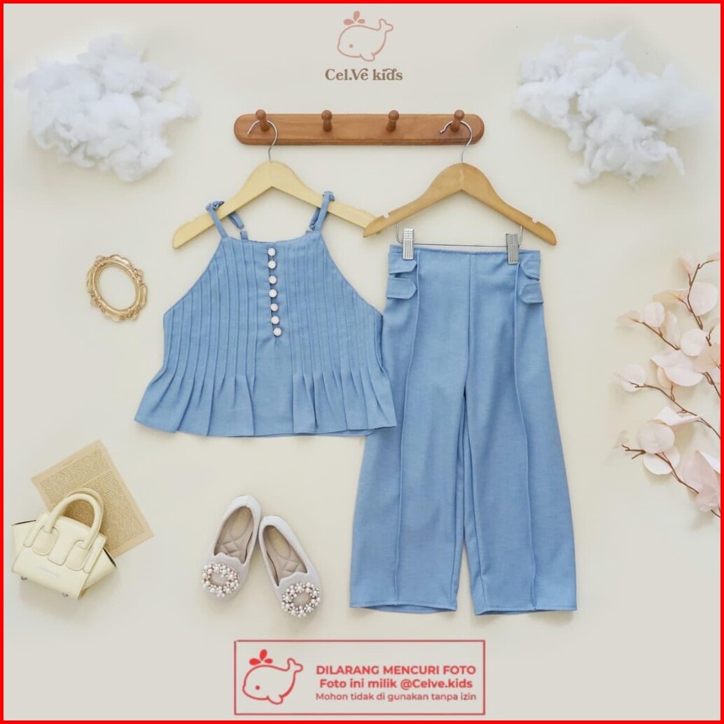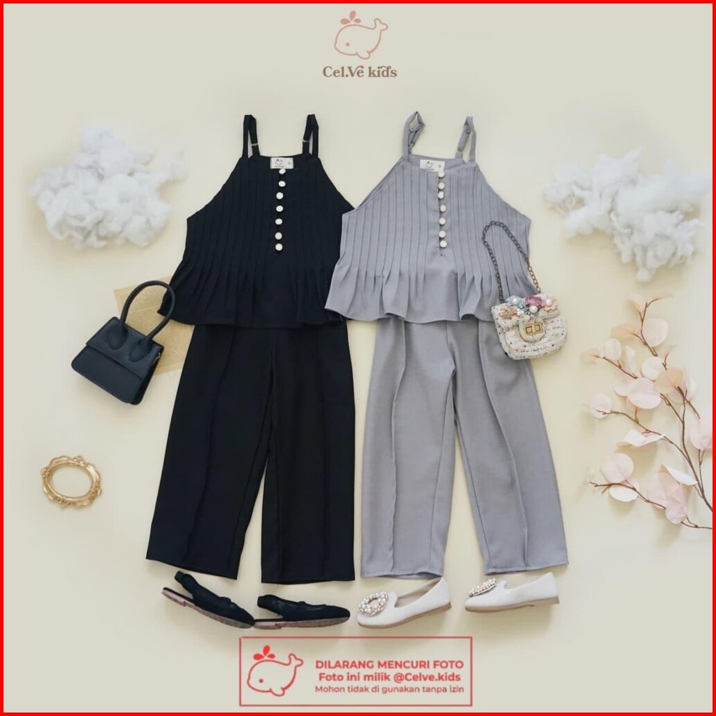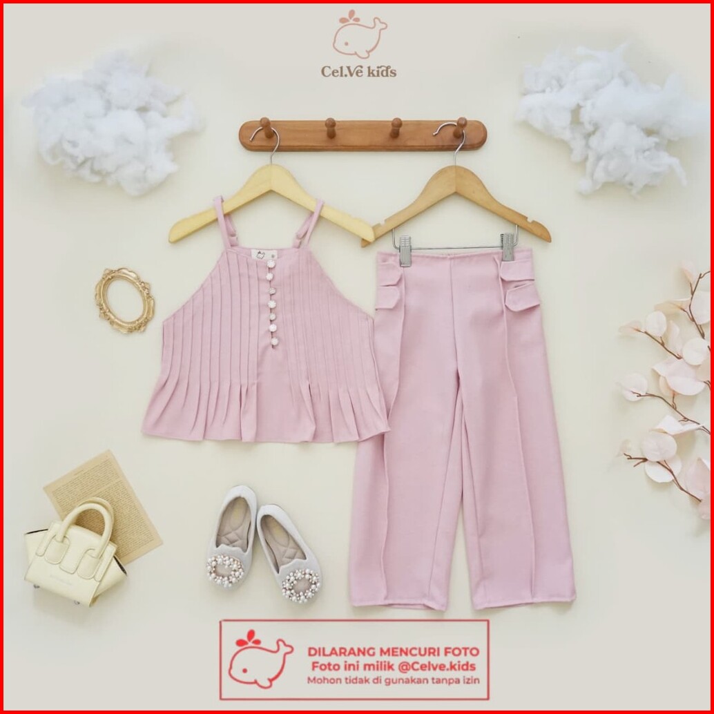 Celvekids - Stelan Loreen Set Baju Celana Anak Perempuan Korean Style Semiwool Usia 1-8th