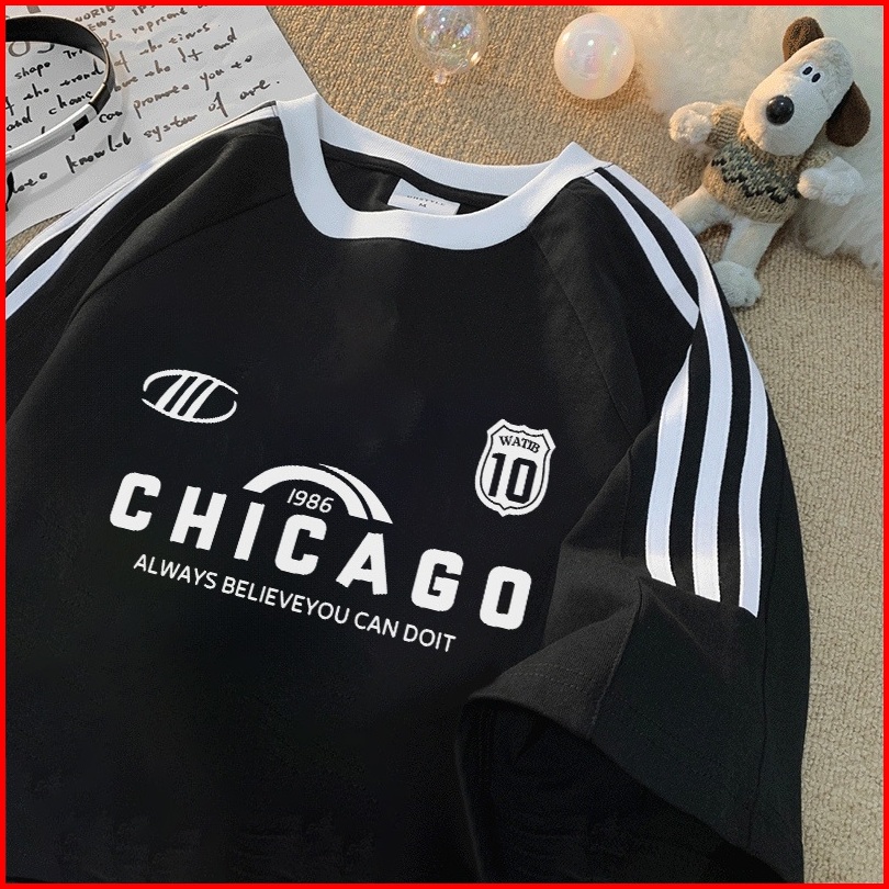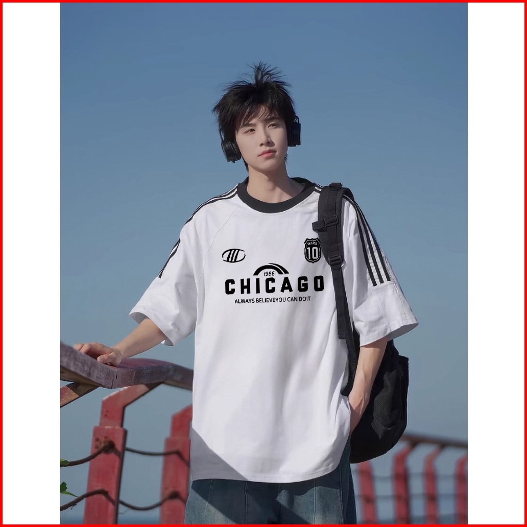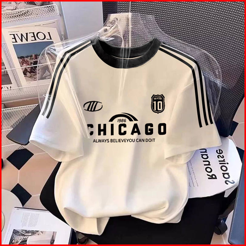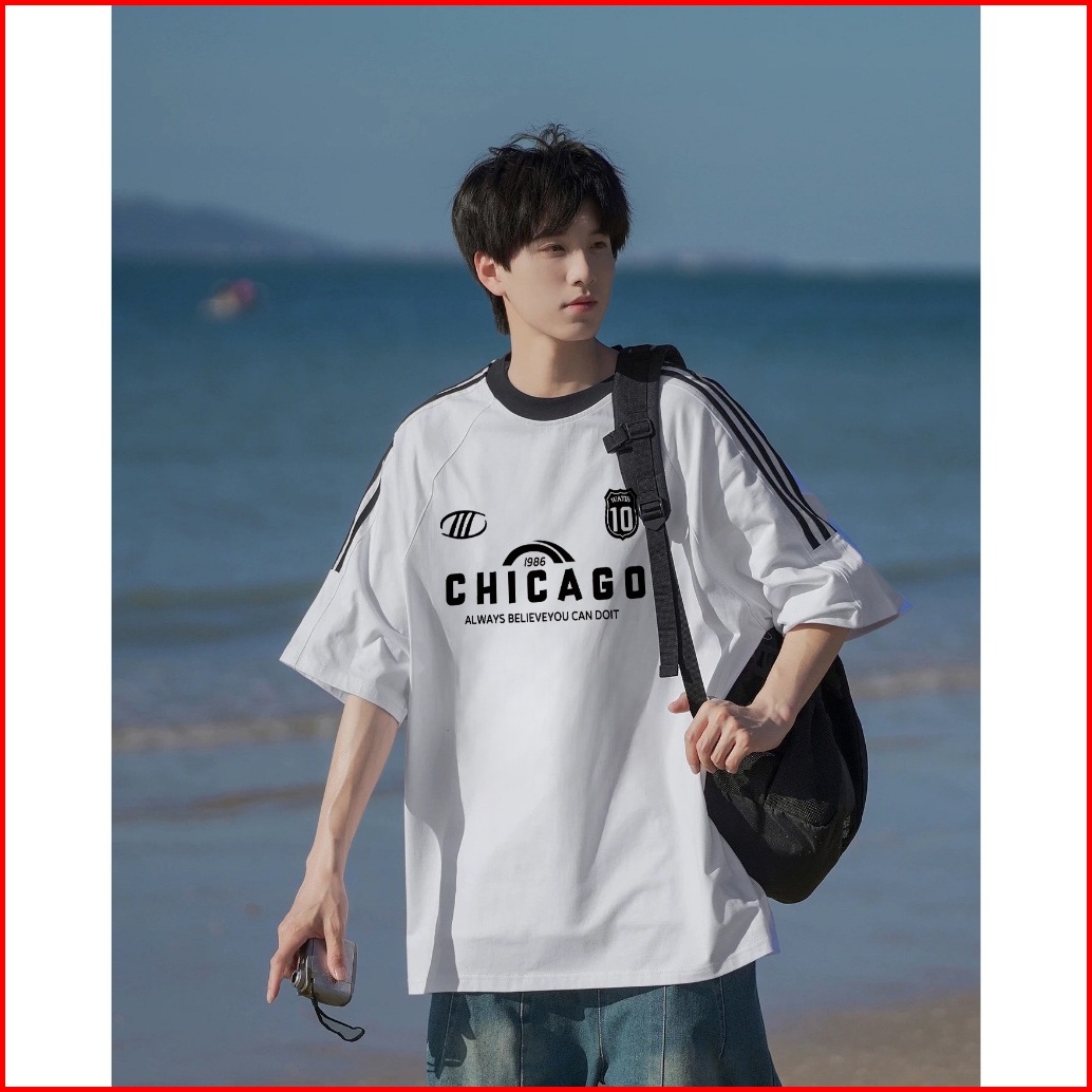 Disneay T Shirt Pria Kaos Lengan Pendek Cetak Surat Pria Korea Versi Korea Dari Tiga Garis Atas Longgar Amerika Vintage