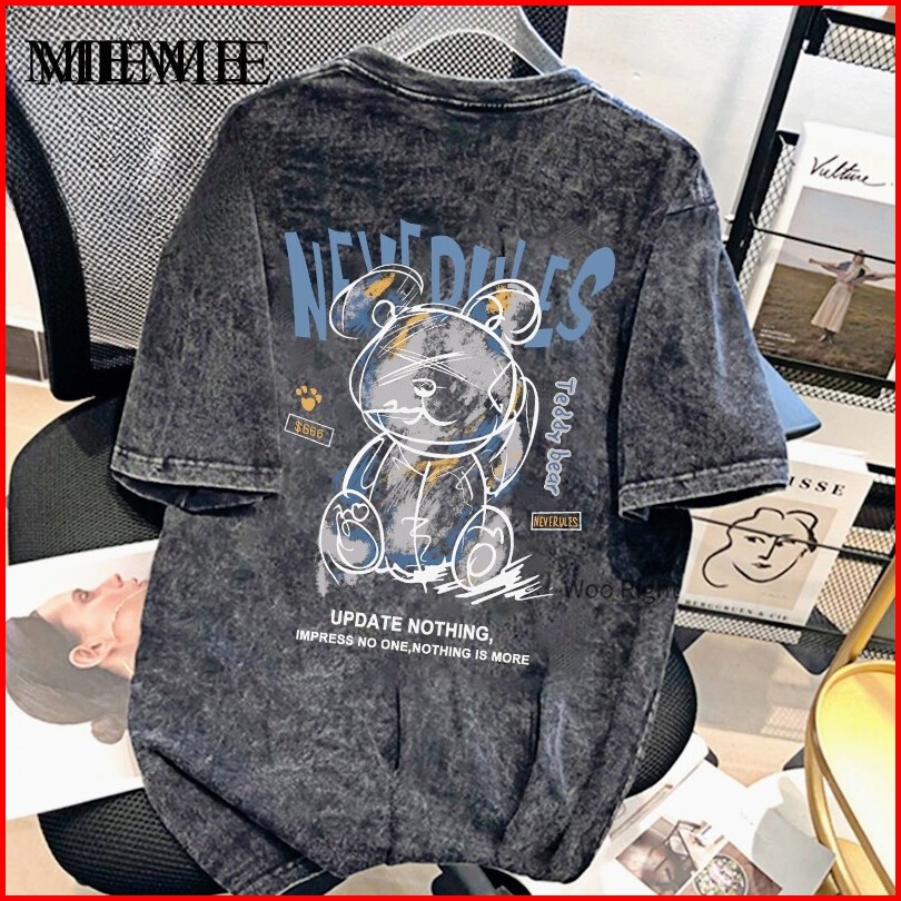 Dikirim Dalam 24 Jam Miemie. Kaos Pria Cuci Air Lengan Pendek 100 Katun Dengan Gaya Amerika Motif Graffit Cetak Huruf S