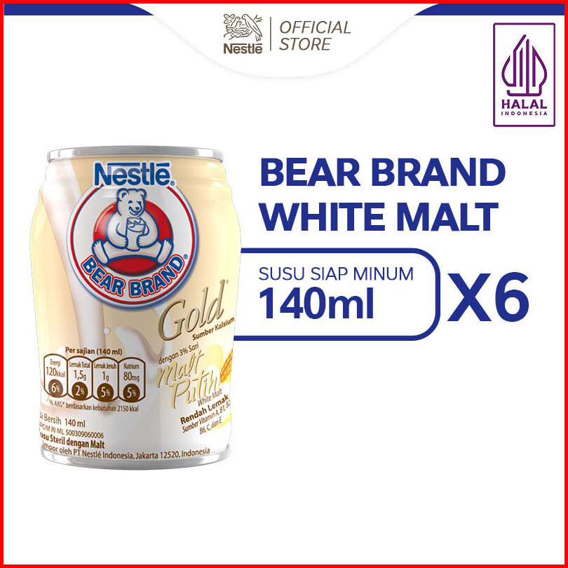 Bear Brand Susu Kaleng White Malt Susu Steril 6x140ml