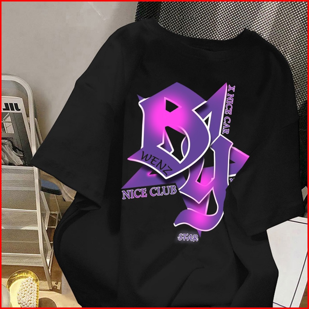 Wenz T-shirt Star Purple Lengan Pendek Koas Distro Club Unised Pria Wanita Size S - Oversize Atasan Keren Tshirt Lengan