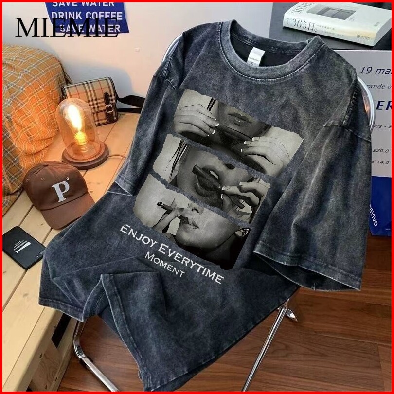 Dikirim Dalam 24 Jam Miemie. Kaos Oversize Pria Dicuci Hitam Kaos Pria Distro Original 100 Cetakan Mode Pencetakan Baju