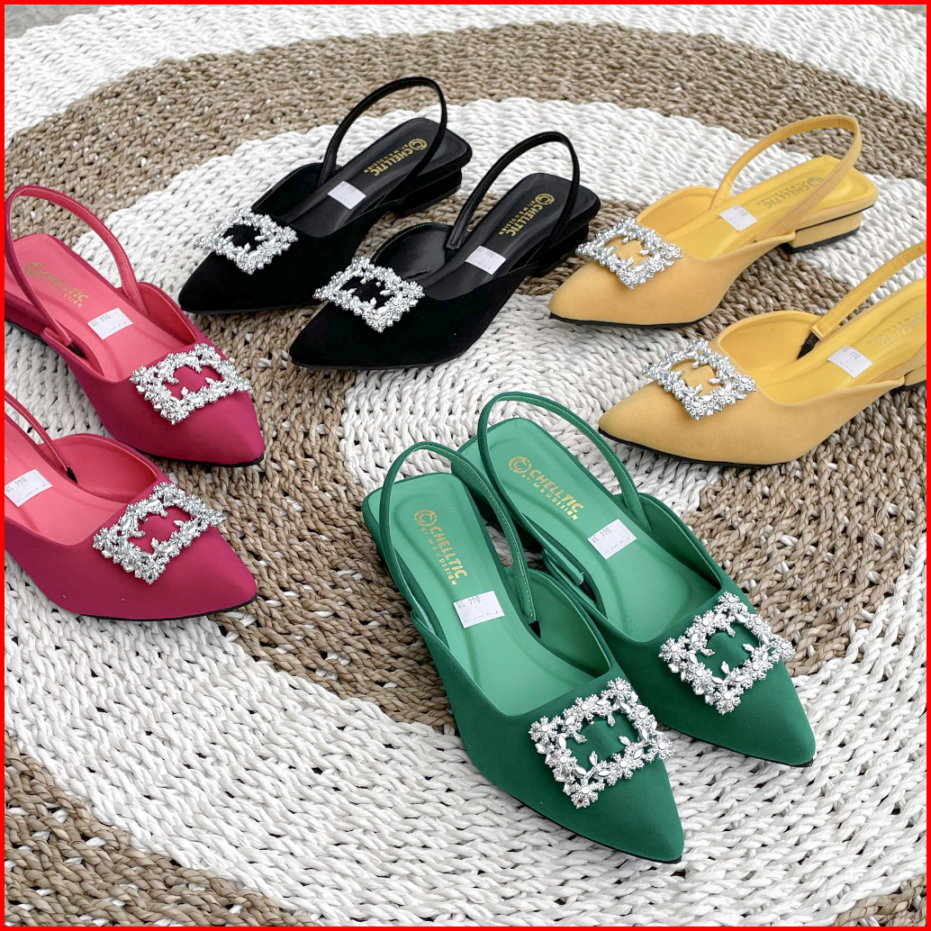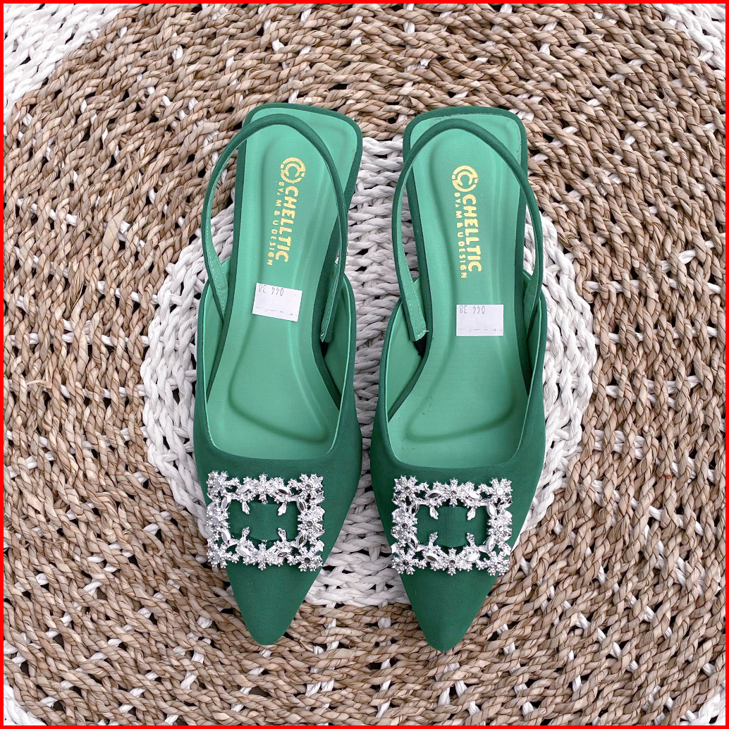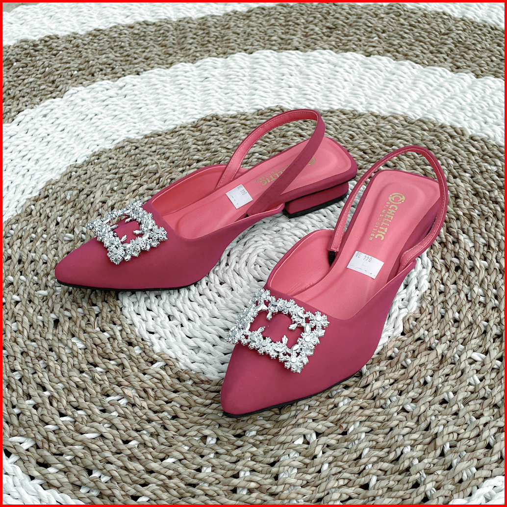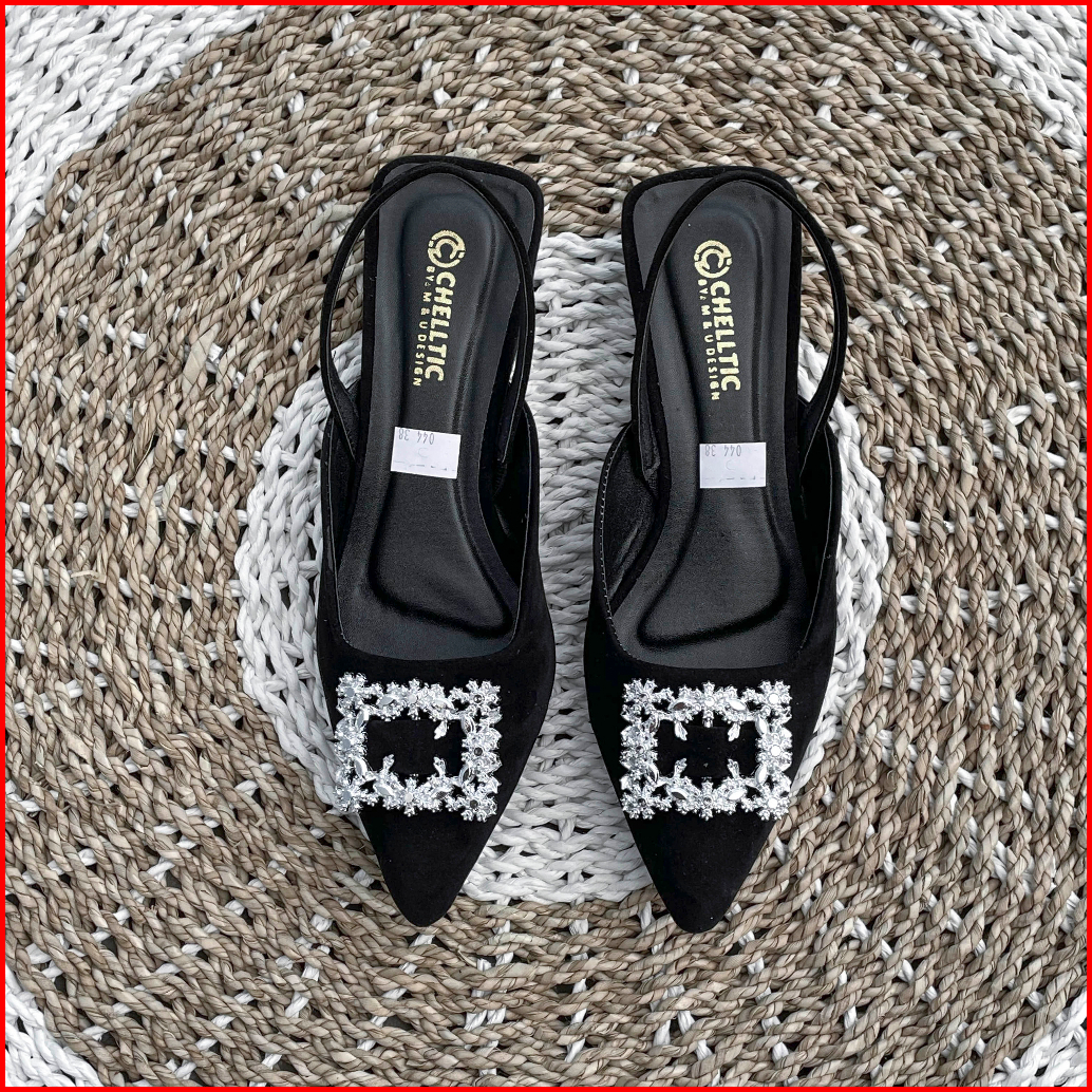 Zr044 Sepatu Flat Mules Slip On Wanita Sandal Bustong Tali Belakang Sepatu Pesta Wanita Heels 2cm Selop Kondangan Wisuda