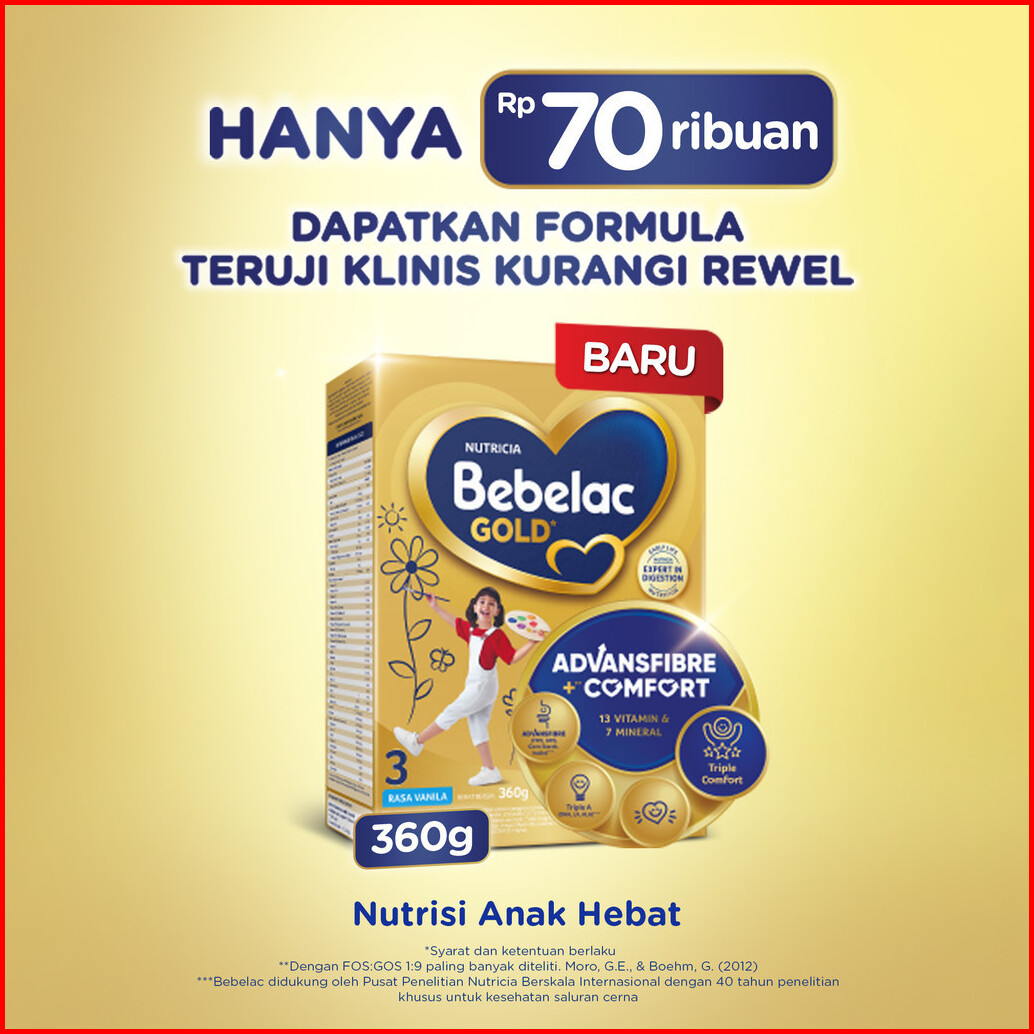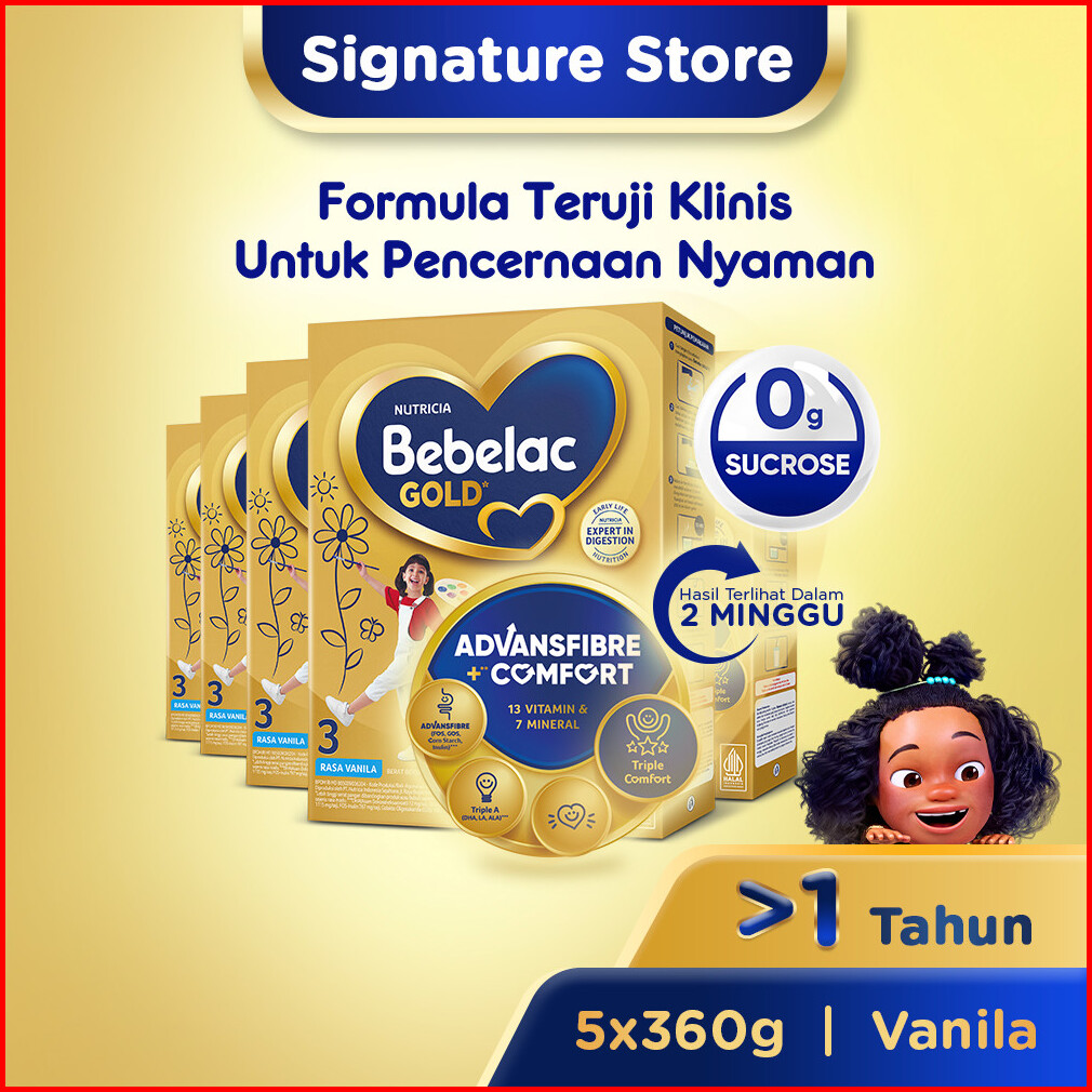 Bebelac 3 Vanila 360 Gr X5 - Formula Teruji Klinis Untuk Pencernaan Nyaman