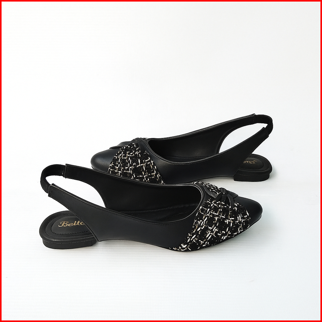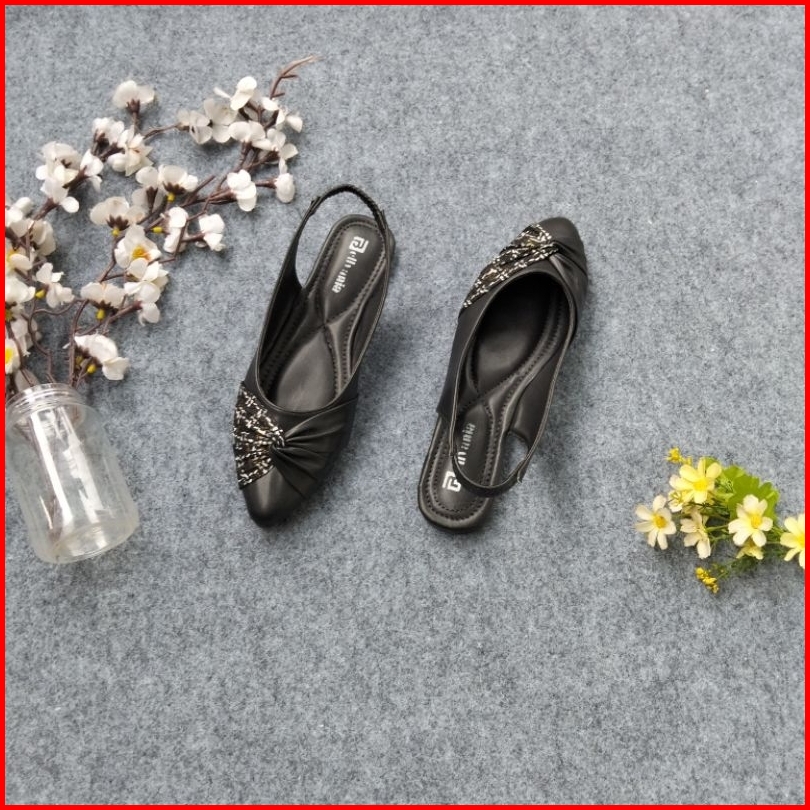 Bellvania Flatshoes Wanita Elegan Tali Karet Belakang Hitam