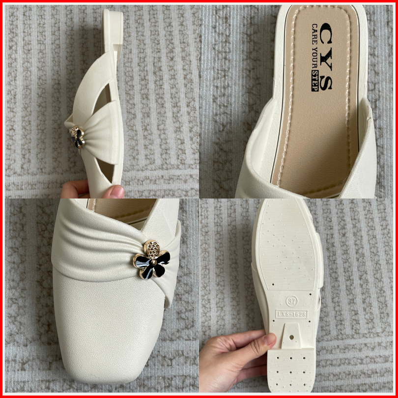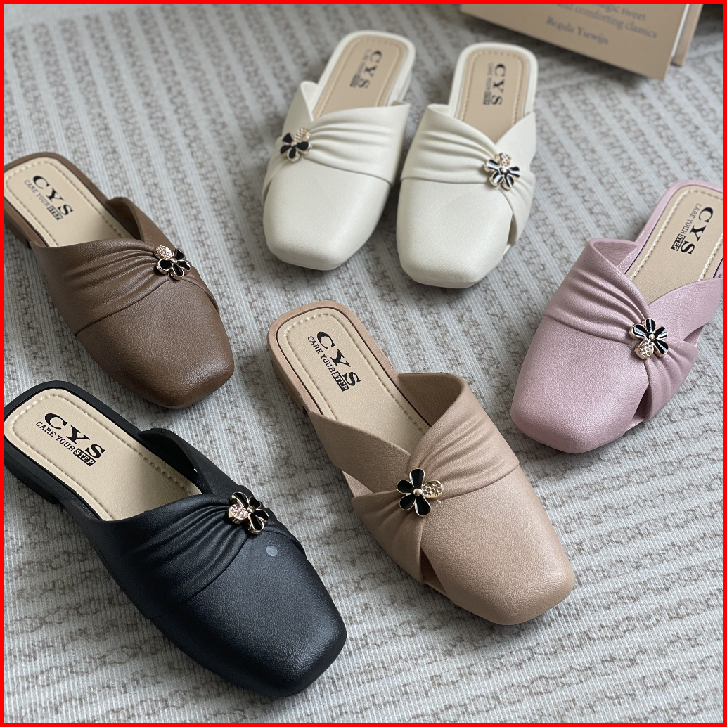 Sepatu Sandal Wanita Low Heel Polos Mules Slop Woman Kasual Flat Shoes Cewek Kekinian Simpel Spt-96