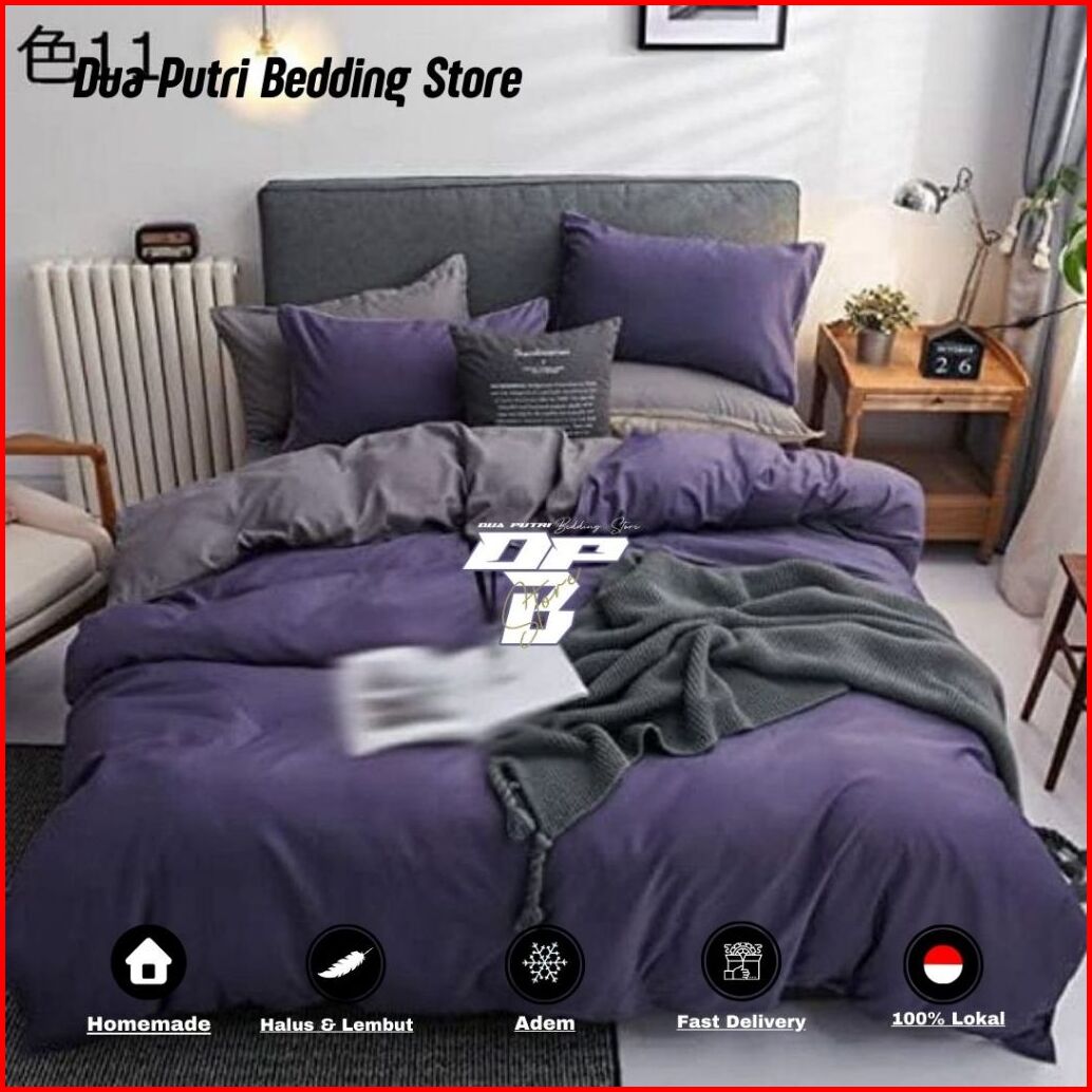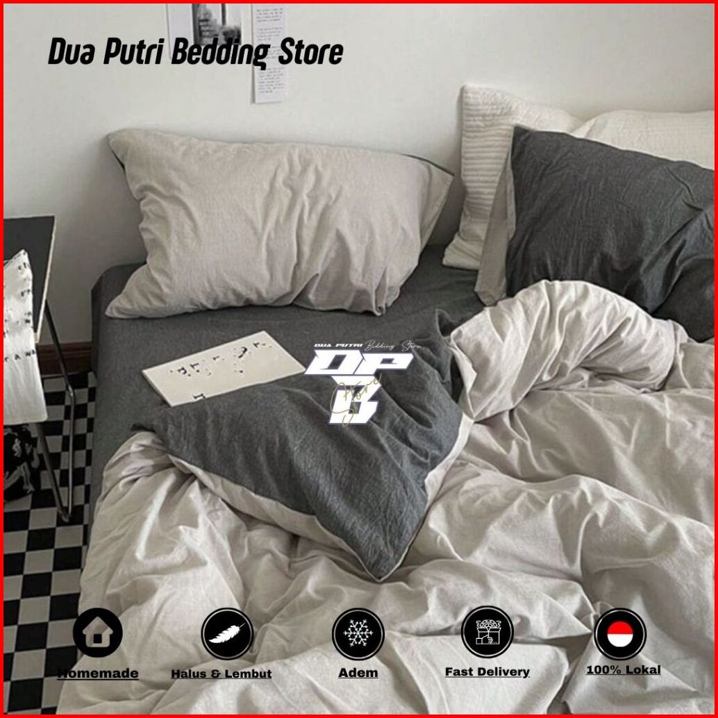 Bedcover Set Motif Kombinasi Polos- Single Queen King Size- Free Sarung Bantal Guling