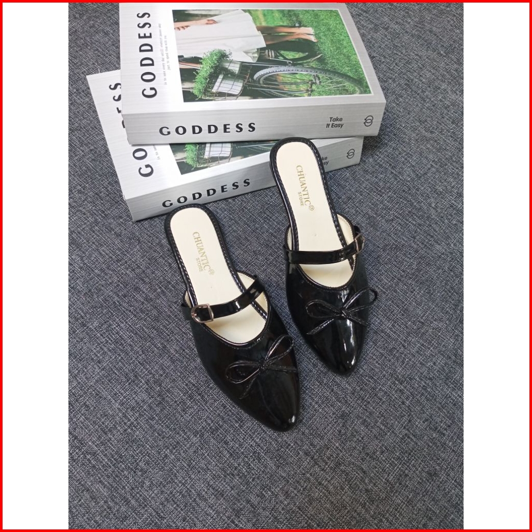 Sepatu Platshoes Wanita Kekinian Sandal Sepatu Mules Flat Tali Straps Gesper Flat Pita Terbaru Platform Trendy