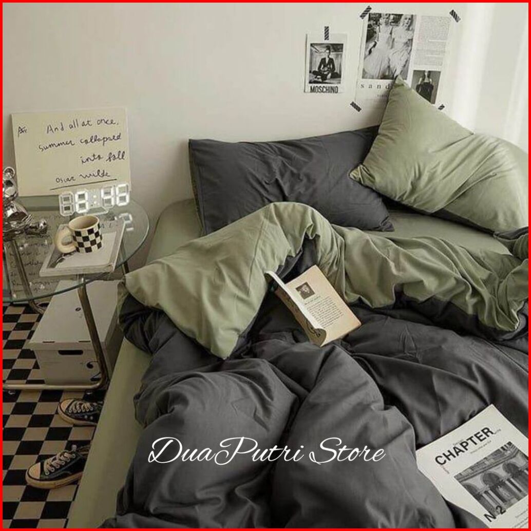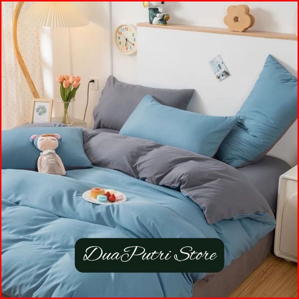 Bedcover Set Sprei Two Tone Korean Style Aesthetic Polosan Bisa Mix Warna
