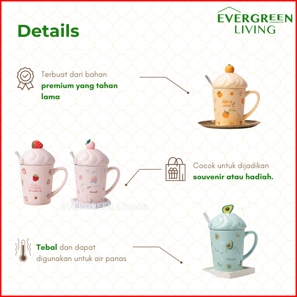 Evergreen Gelas Cangkir Mug Buah Buahan Orange Avocado Strawberry Peach Aestetik Tahan Panas Elegant Mewah High Quality