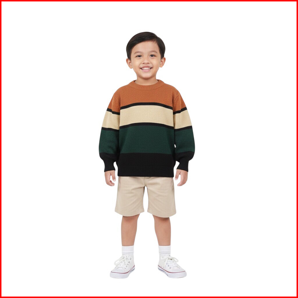 Figo Kids Knitwear Sweater Rajut Anak Garis-garis Katun S-xxl