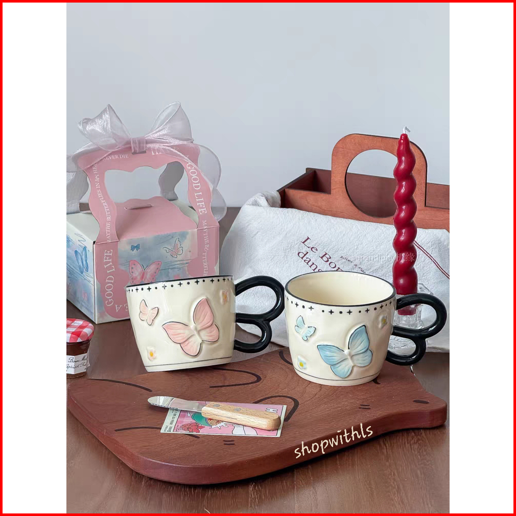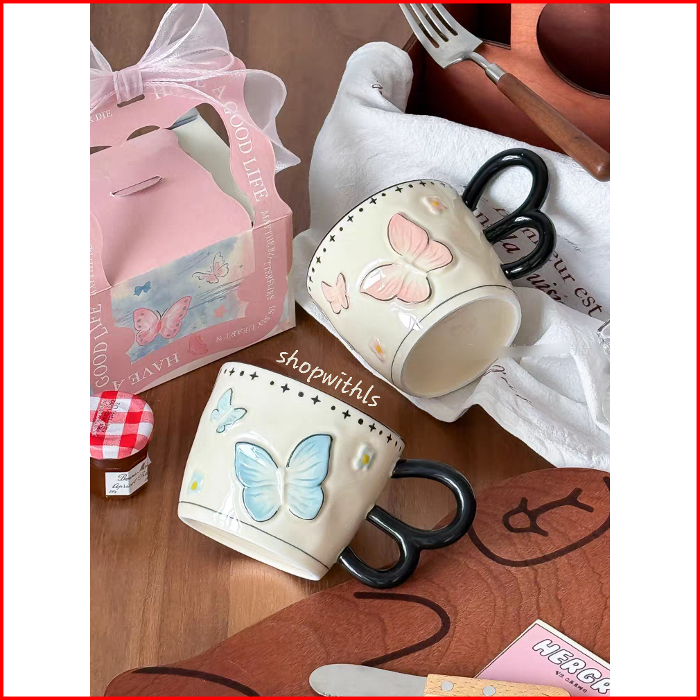 Butterfly Mug Korean Style Mug Cute Ceramic Butterfly Mug Cangkir Motif Kupu Kupu Cangkir Kopi Teh Estetik Cangkir Keram