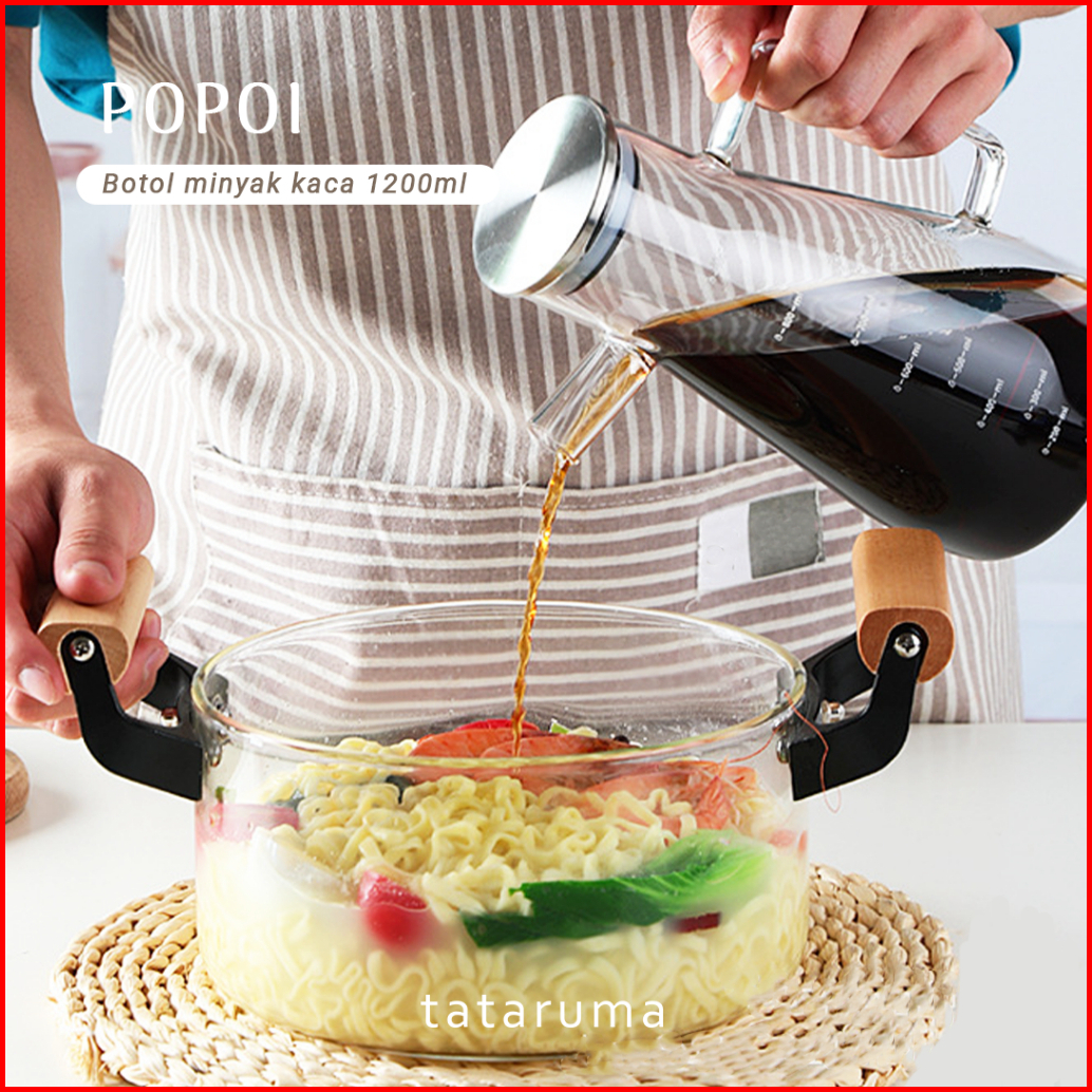 Tataruma Popoi - Oil Jar Tempat Minyak Dengan Penutup Kaca Borosilikat Simpan Kecap Minyak Wijen Cuka