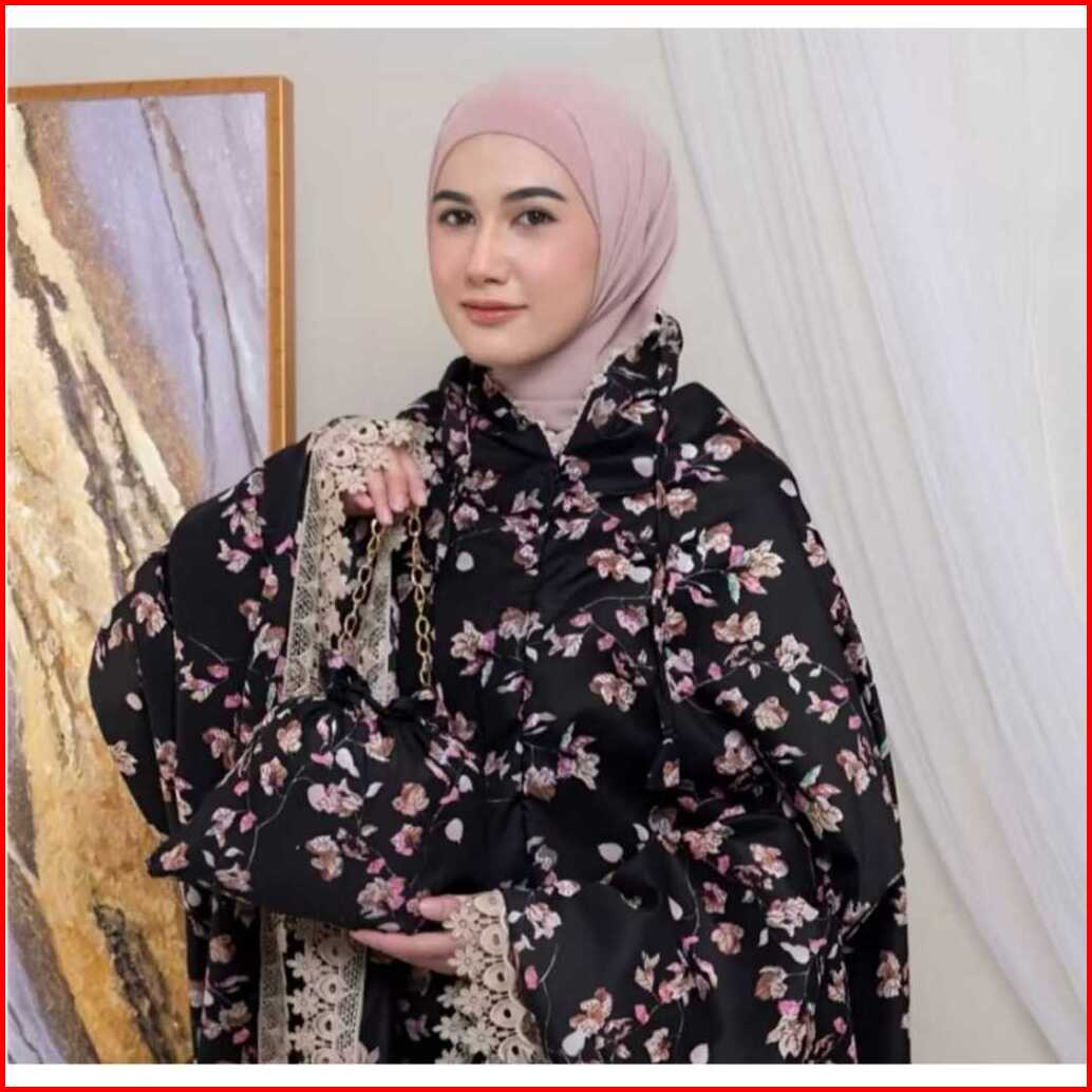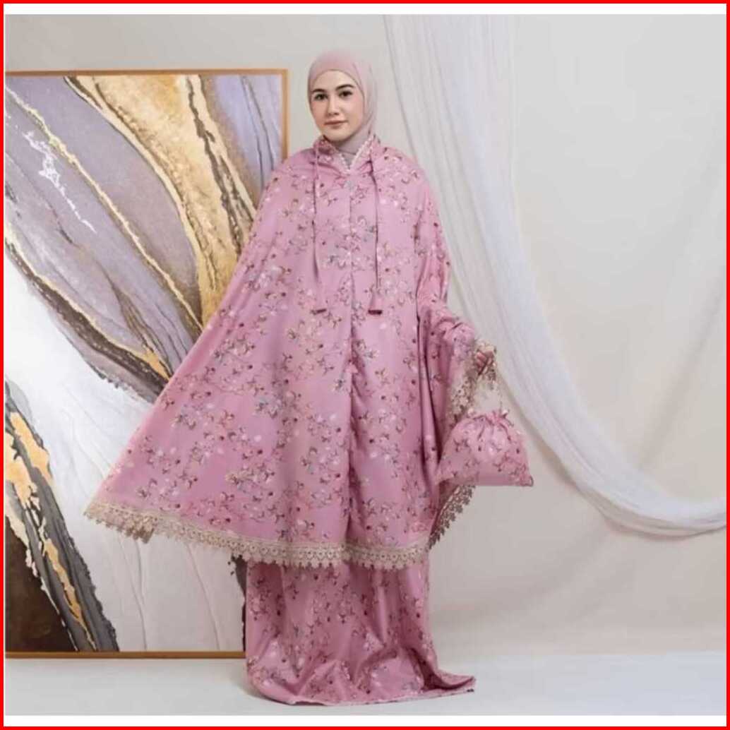 Mukena Dewasa 2in1 Resleting Motif Bunga Jumbo Free Tas Pouch