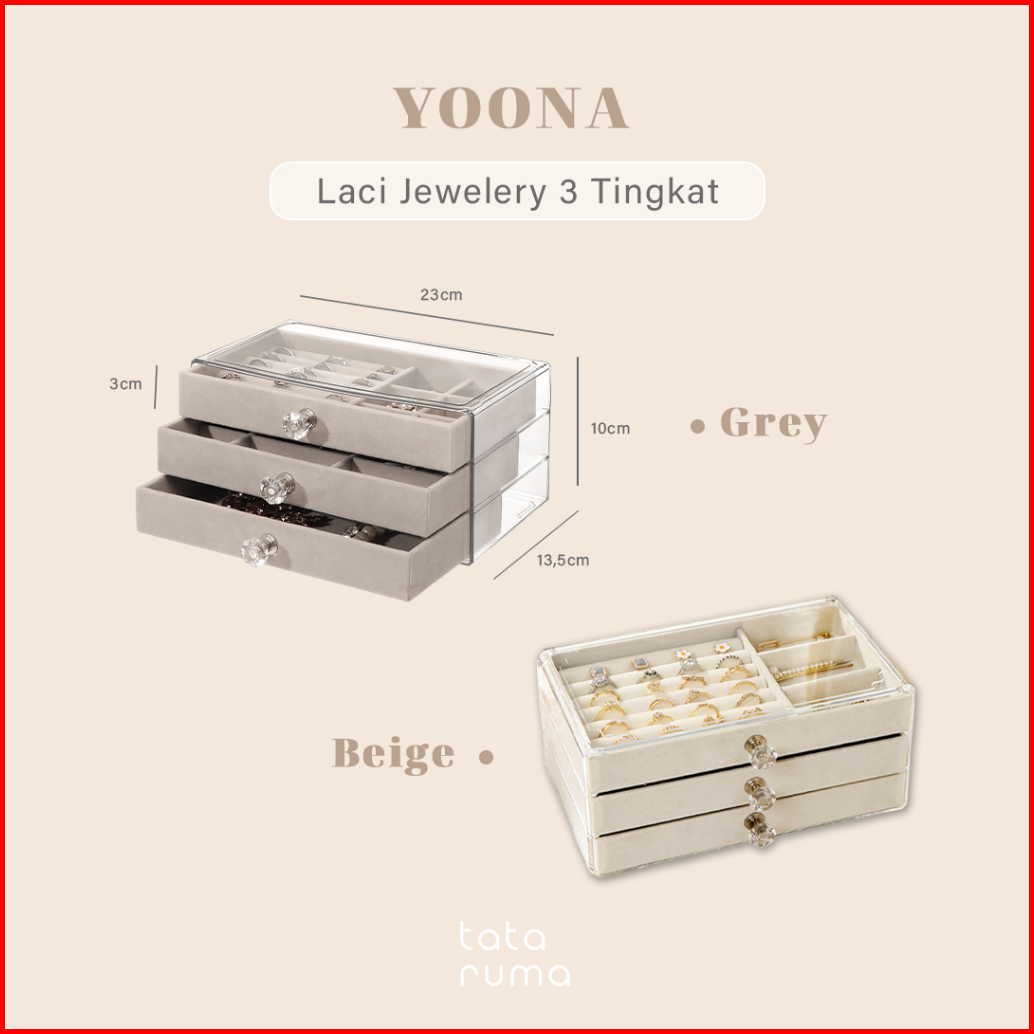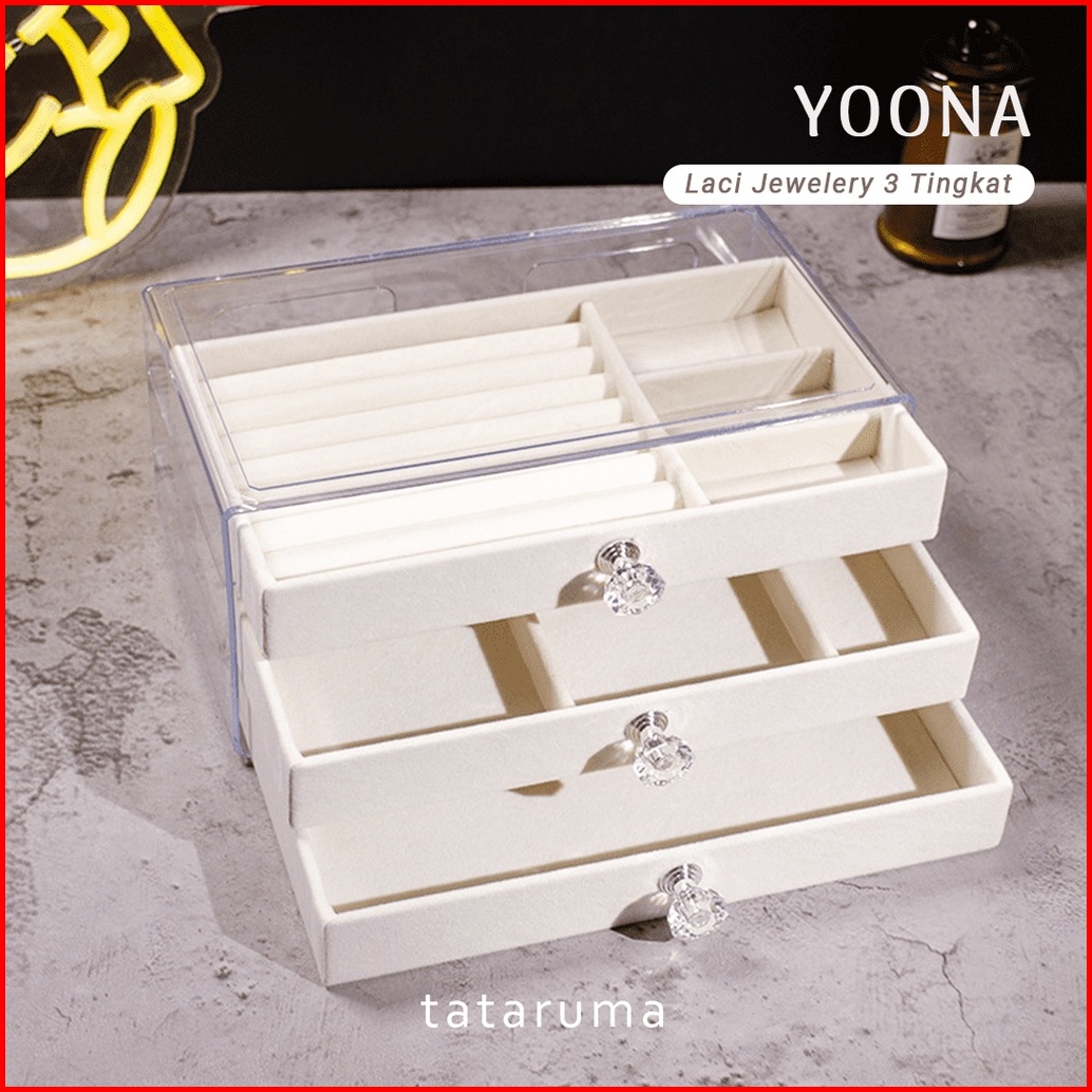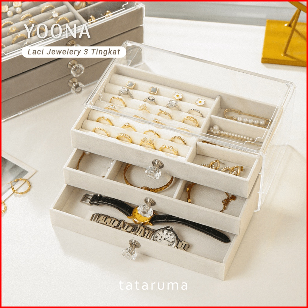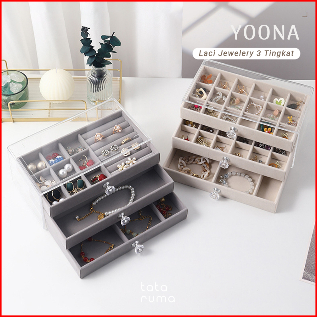 Tataruma Yoona - Jewelery Box Beludru Organizer Laci 3 Tingkat Display