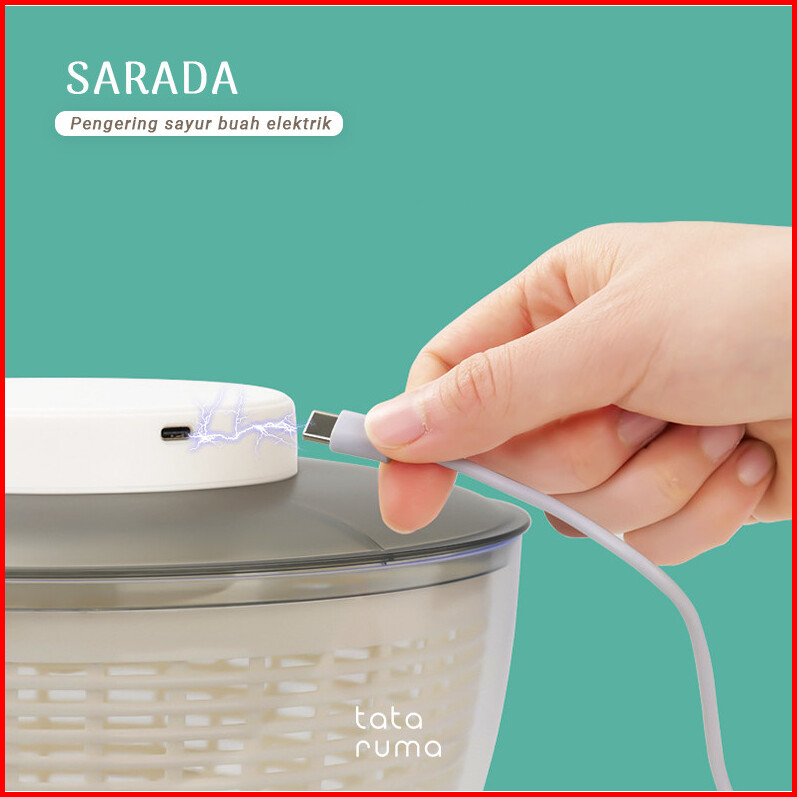 Tataruma Sarada - Salad Spinner Bowl Peniris Pengering Putar Sayur Buah Elektrik