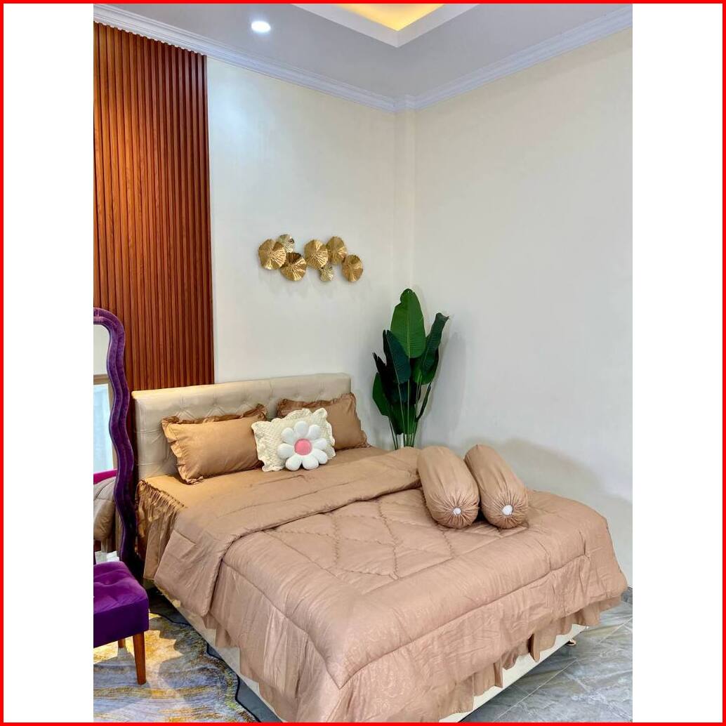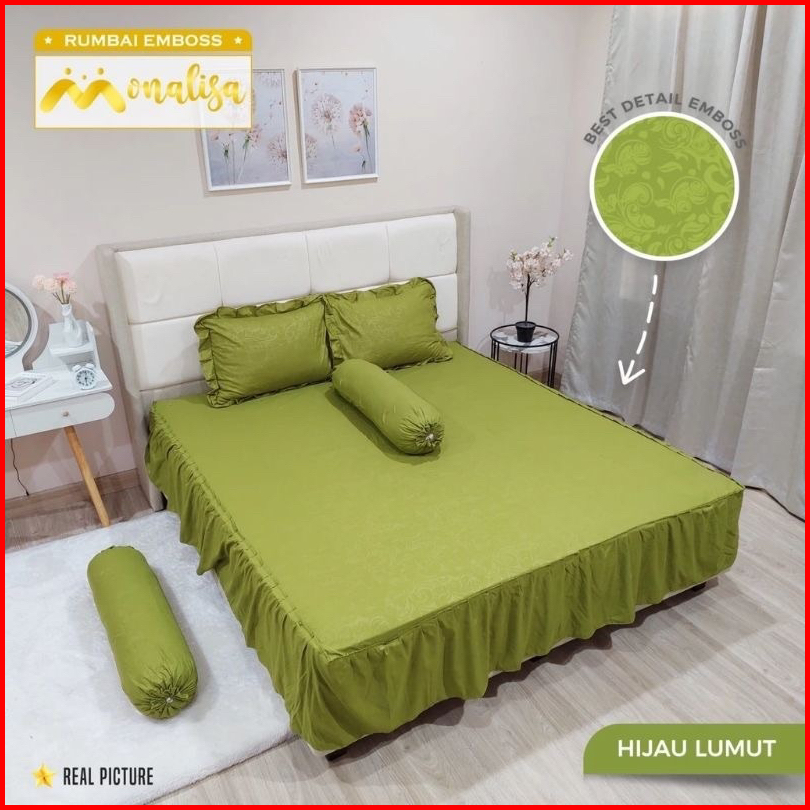 Bedcover Set Rumbai Polos Embose Dan Motif Set Sarung Bantal Dan Guling