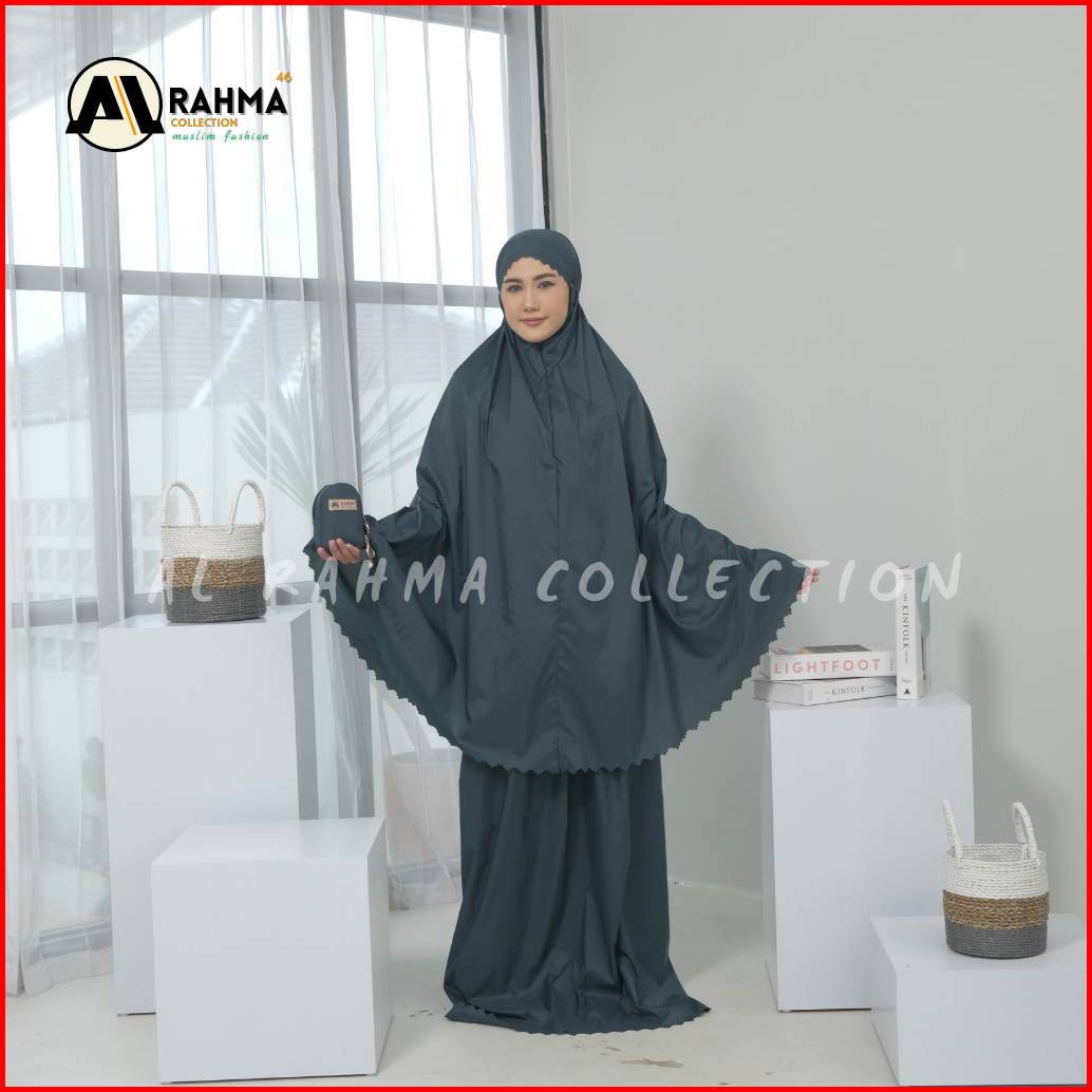 Al Rahma - Mukena Mini Pouch 2in1 Terkecil Parasut Premium Korea Daily Lasercut Travel Free Gantungan Sajadah Terbaru