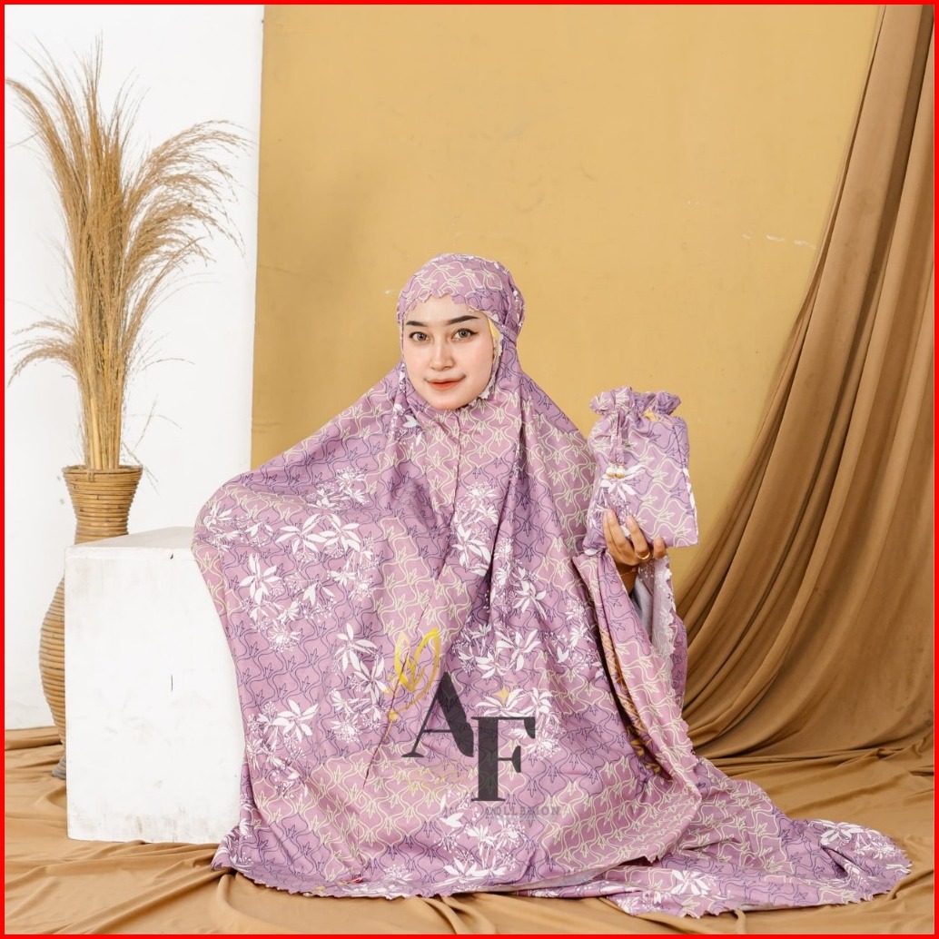 Af Collction Mukena Traveling Mini Pouch 2in1 Laser Cut Motif Terbaru Bahan Katun Micro Premium