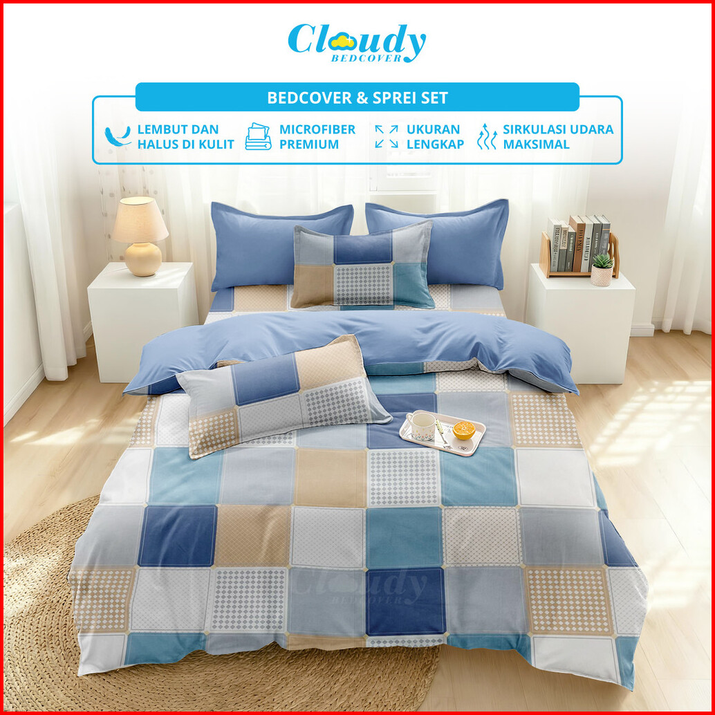 Bedcover Set Sprei Cubitus Mix Royal Blue - Ukuran Lengkap 90x200 - 200x200 - Cloudy Bedcover