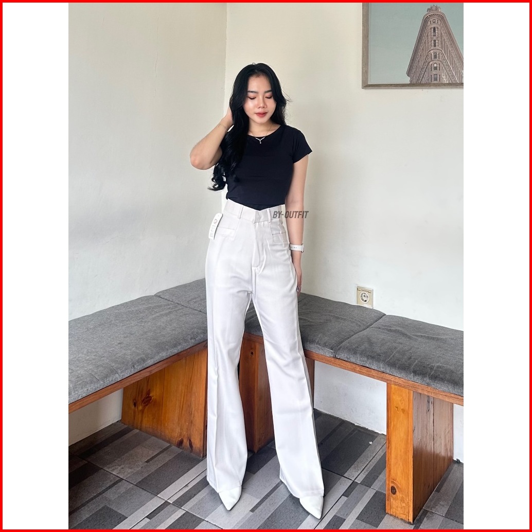 By-outfit Kylie Cutbray Highwaist Pants Cutbray Flare Pants Wanita