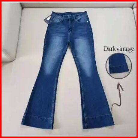 Highwaist Cutbray Jeans Celana Flare Panjang Stretch Wanita Retro Vintage Lipat Bawah