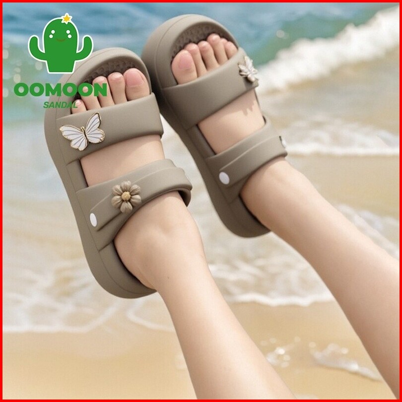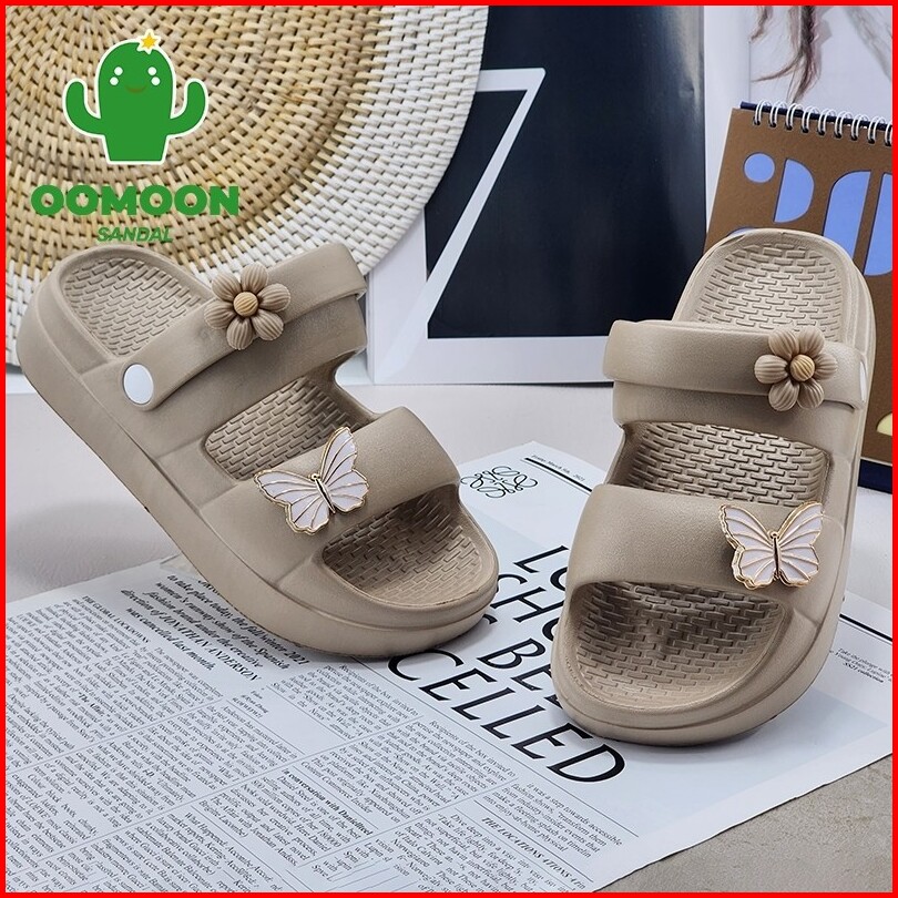 Oomoon Sandal Slide Wanita Slip On Wedges Kekinian Korean Style Terbaru -2506