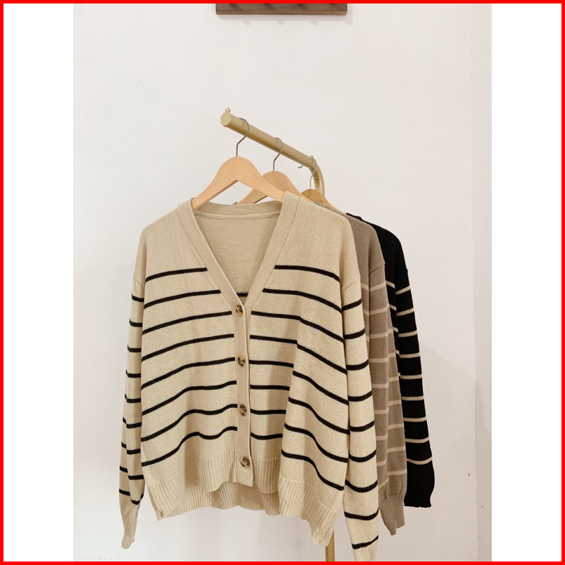 Bian Stripe Cardigan Oversize Sweater Rajut Knit
