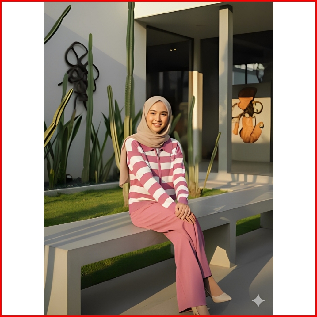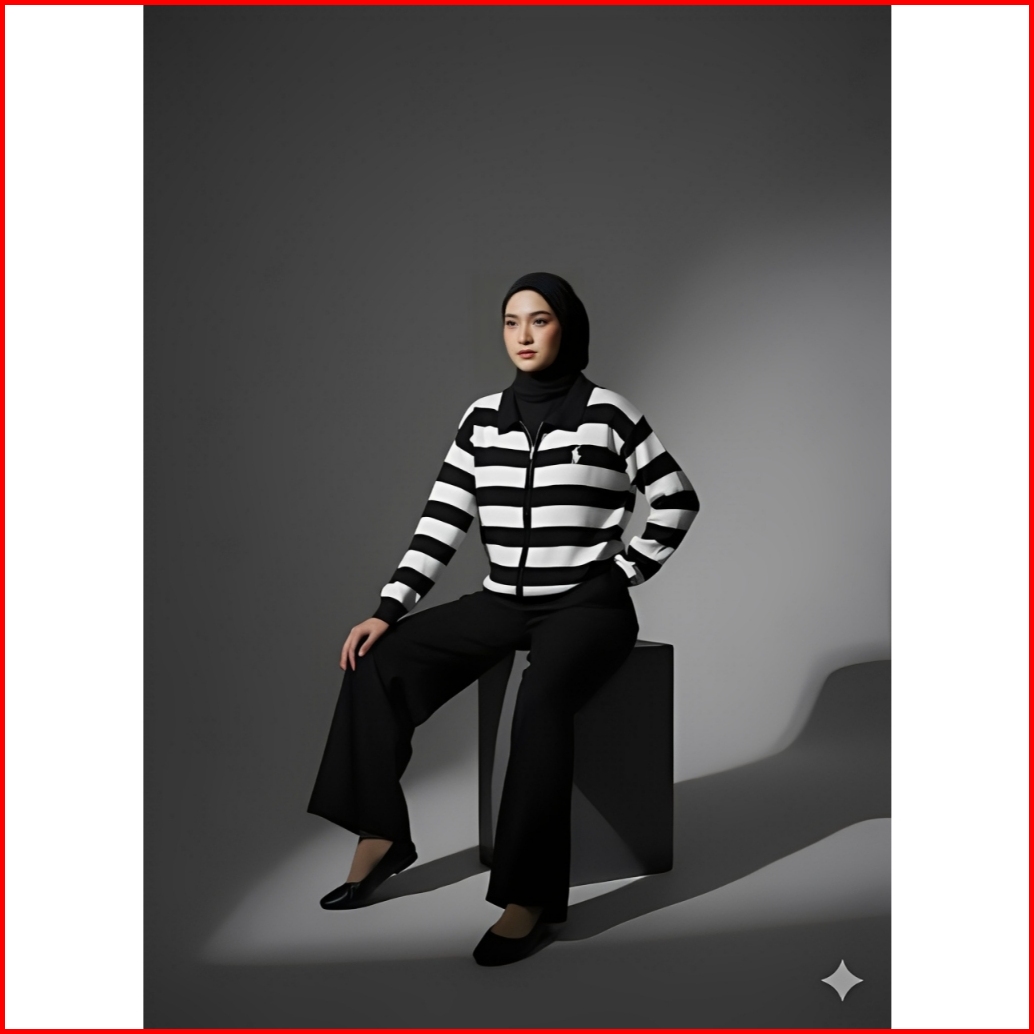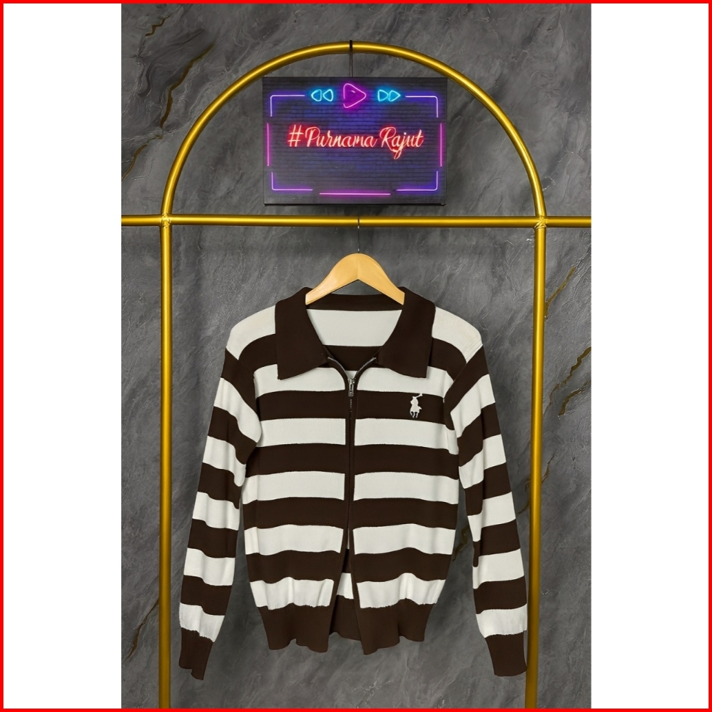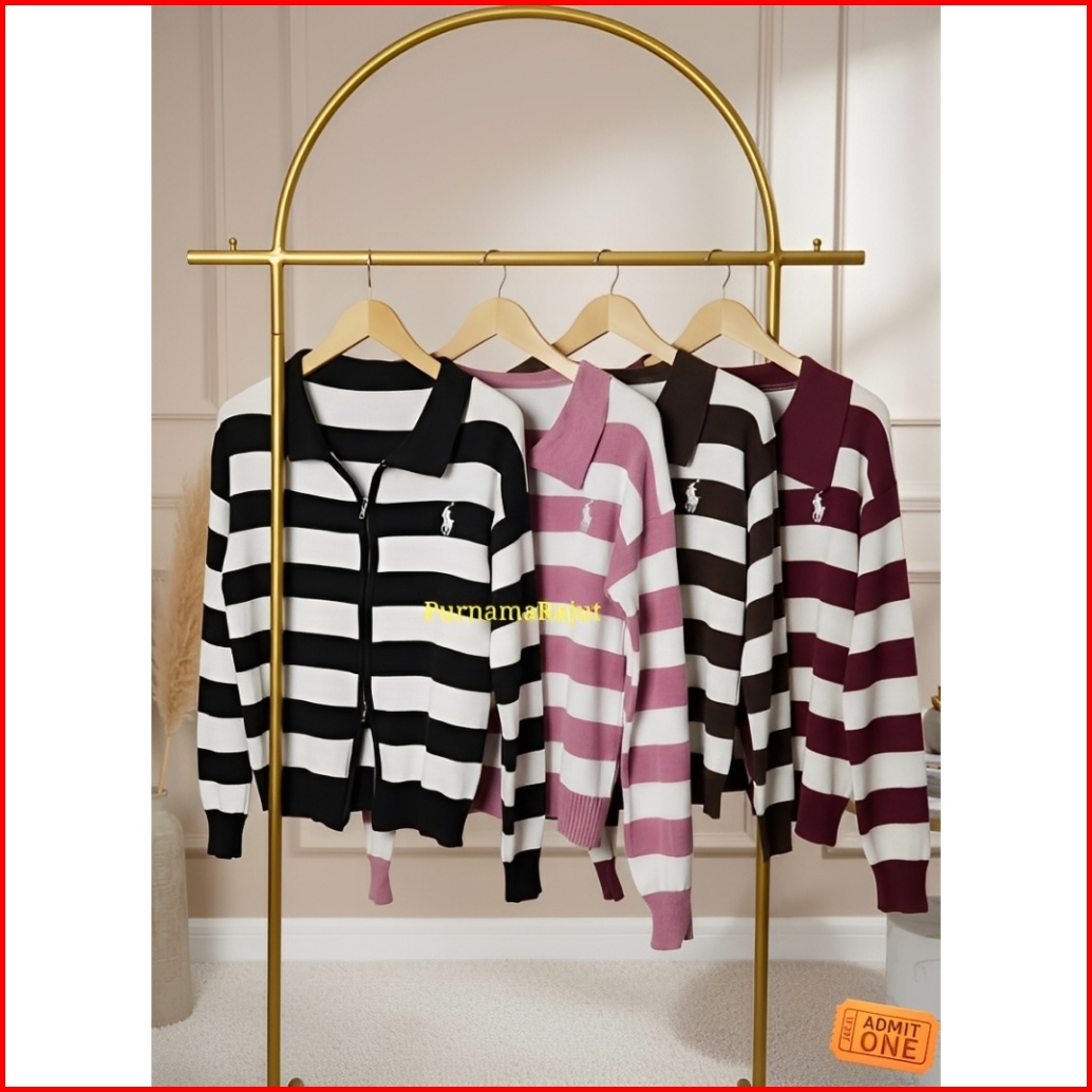 Cardigan Rajut Double Zipper Wanita Motif Garis Tebal Stripes Cocok Untuk Kampus Kerja Hangout