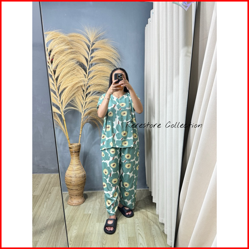 Baju Tidur One Set Setelan Wanita Rayon Premium Jumbo Terbaru Pajamas Piyama Celana Panjang