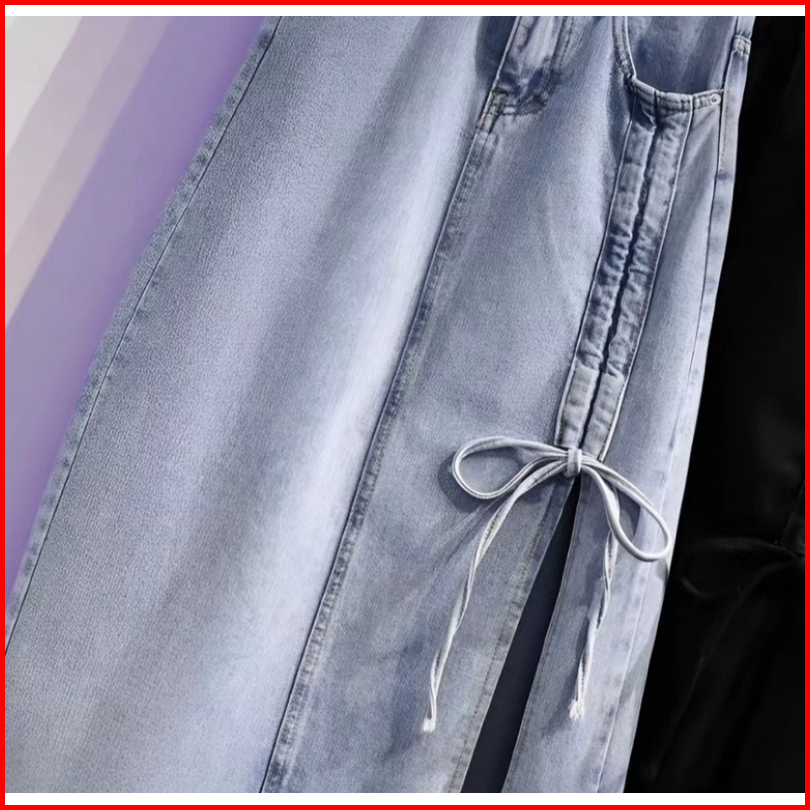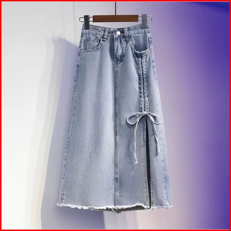 Nikita Rok Skirt Jeans Serut Tali Korean Midi Belah Casual Kekinian - Rok Jeans Belah Depan 7 8