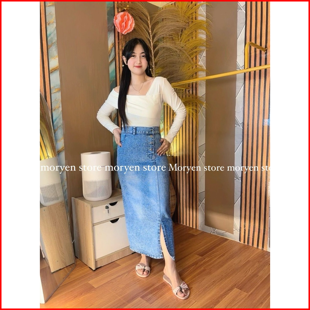 Exclusive Moryen X Cifeby Moreen Rok Jeans Kancing Depan Belah Belakang Rok Jeans Skirt Rok Kamila Rok Rebeca Pinggang K