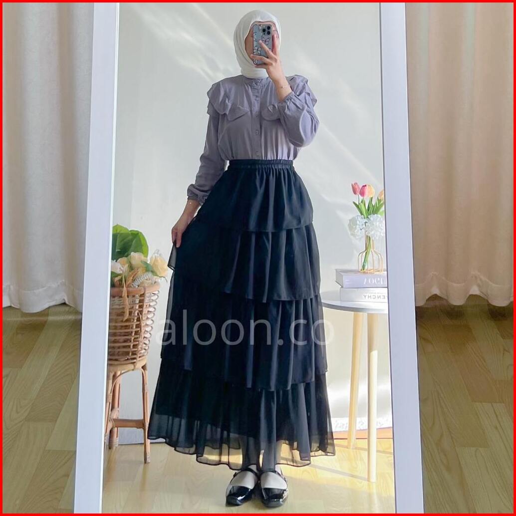 Yuri Rok Rempel Ceruty Babydoll Premium Rok Korean Style Maxi Terbaru