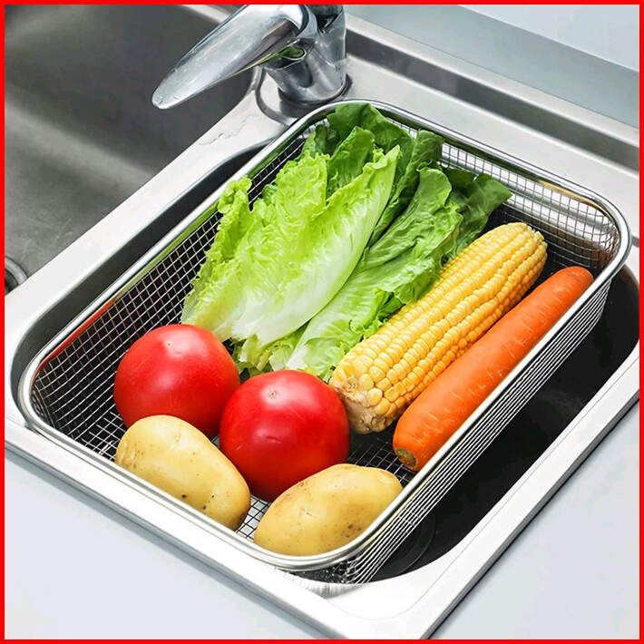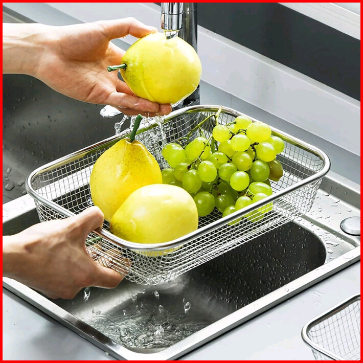 Keranjang Saringan Tirisan Segi Baskom Stainless Steel 27cm - L