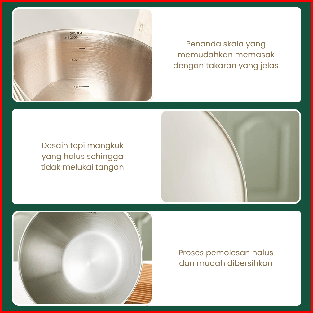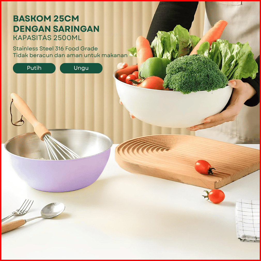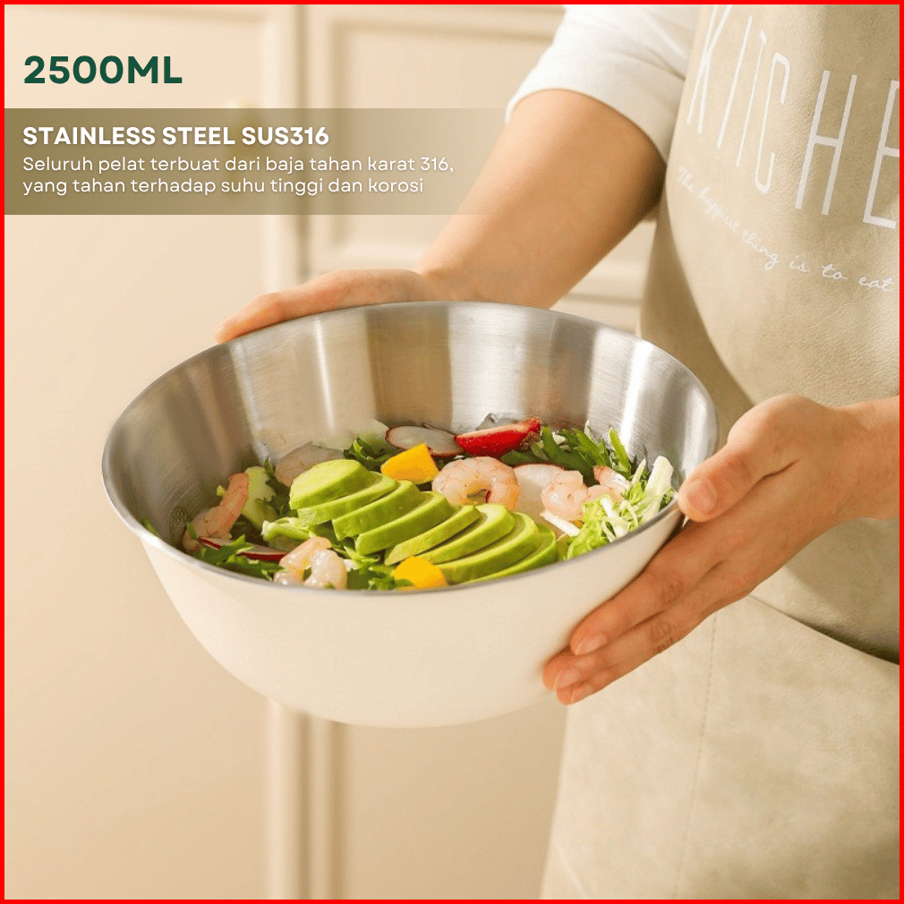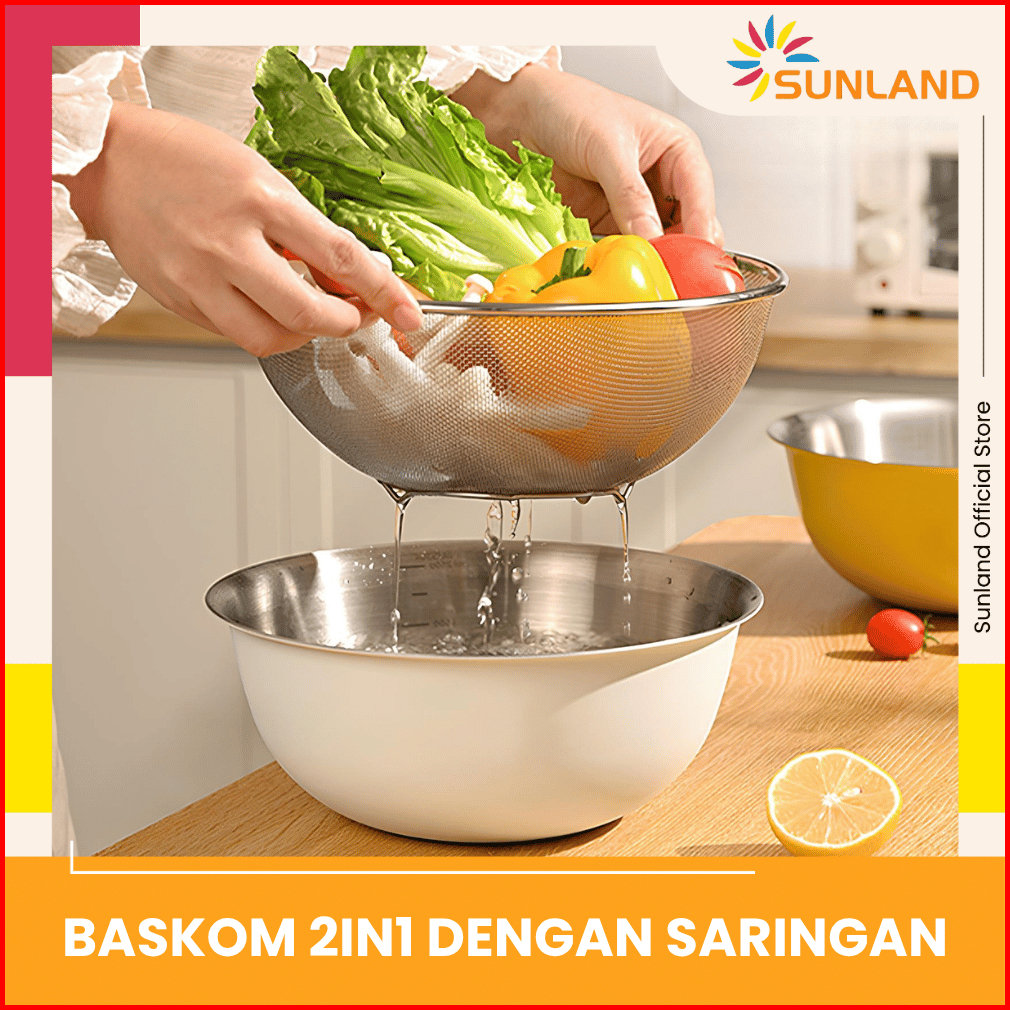 Sunland 2 In 1 Baskom Tirisan Saring Stainless Steel 316 Wadah Saringan Sayur Buah Makanan 2500 Ml